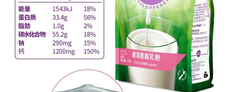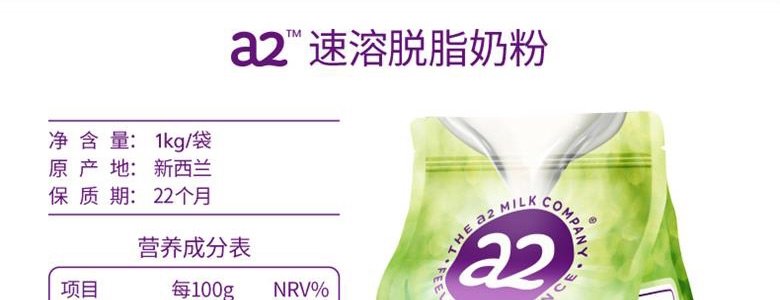 商品名称:新西兰 A2 成人脱脂奶粉 1kg