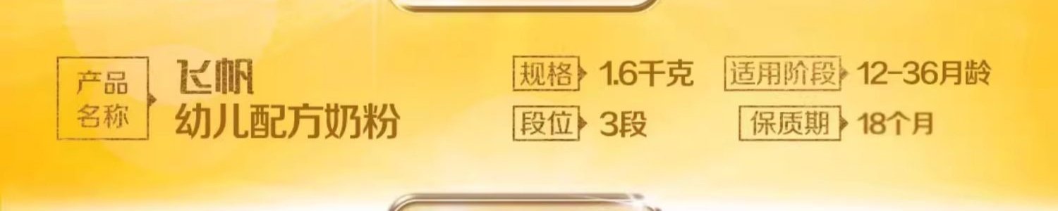 商品名称:飞鹤 飞帆幼儿配方牛奶粉 3段 1600g 四联装 适合12-36个月
