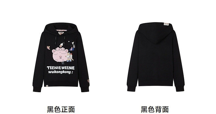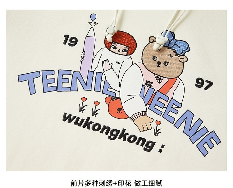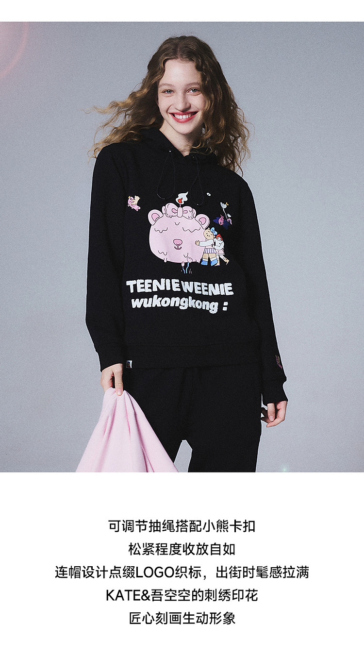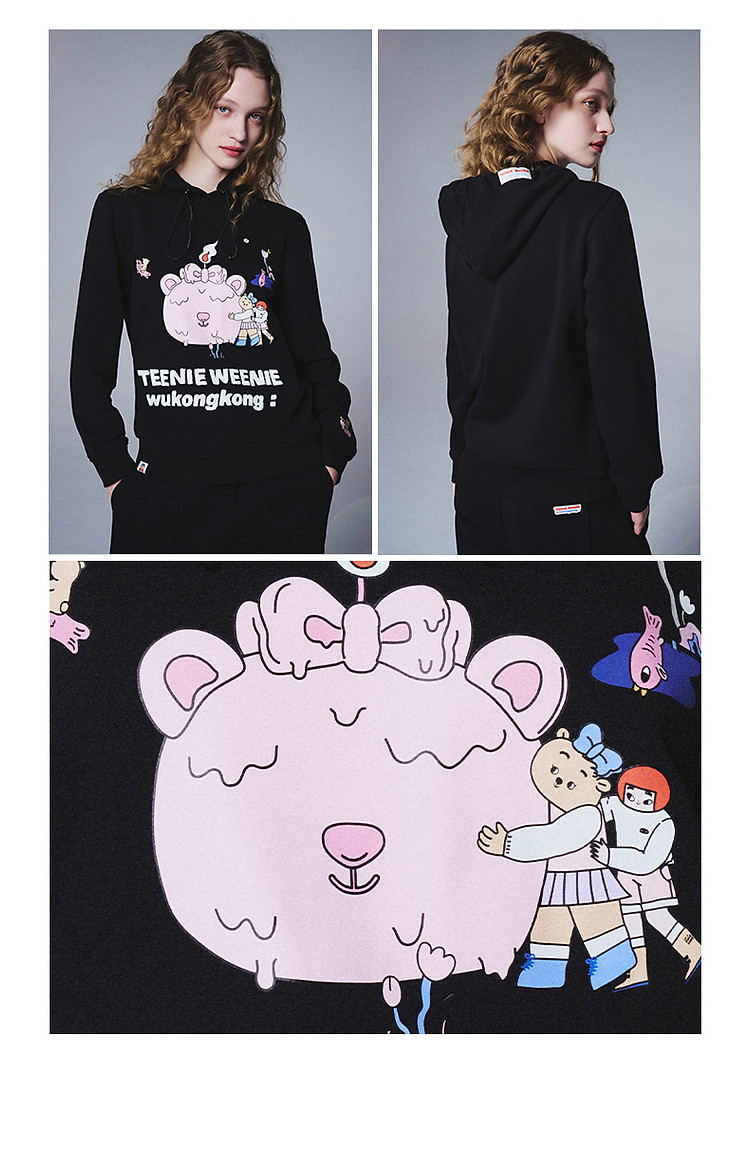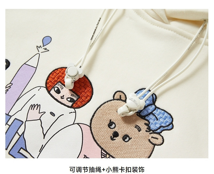 商品名称:小熊&吾空空联名2024年时尚套头抽绳连帽印花卫衣 137985