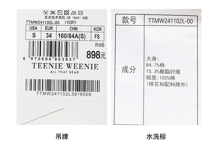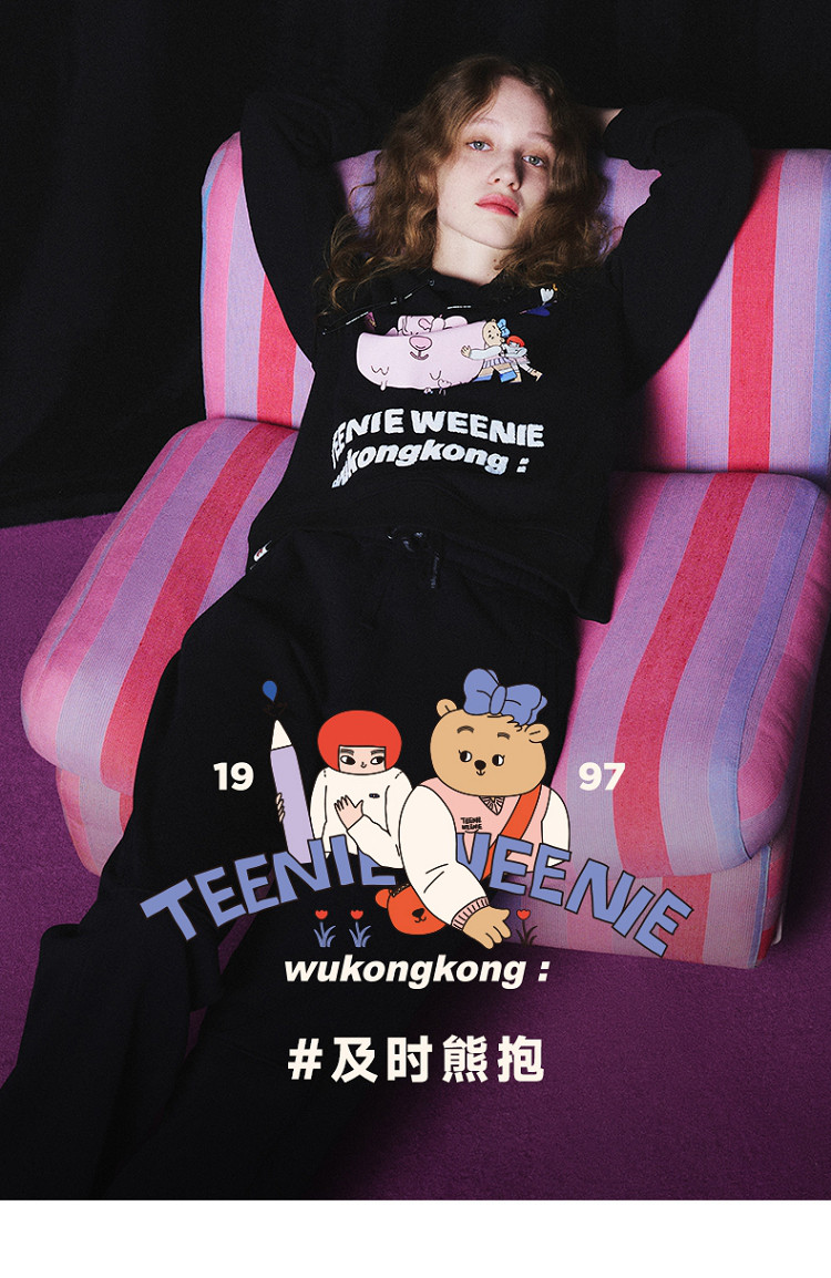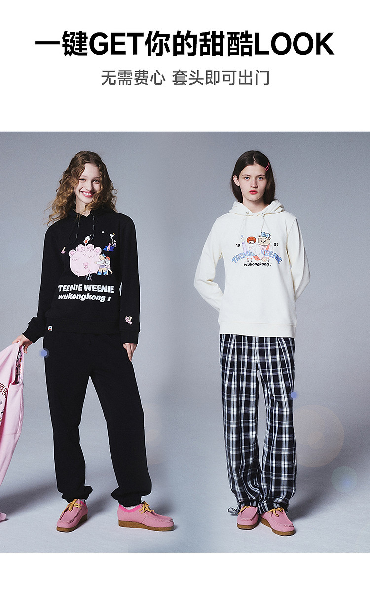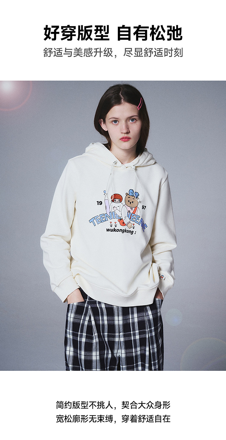 商品名称:小熊&吾空空联名2024年时尚套头抽绳连帽印花卫衣 137985