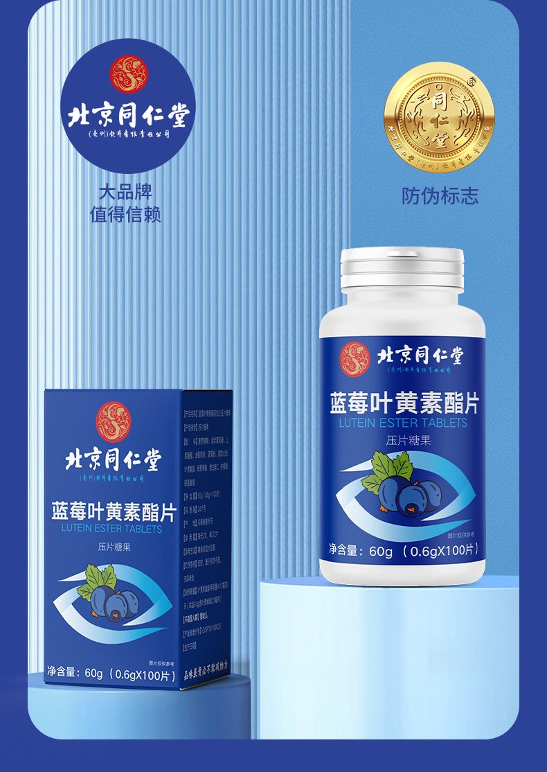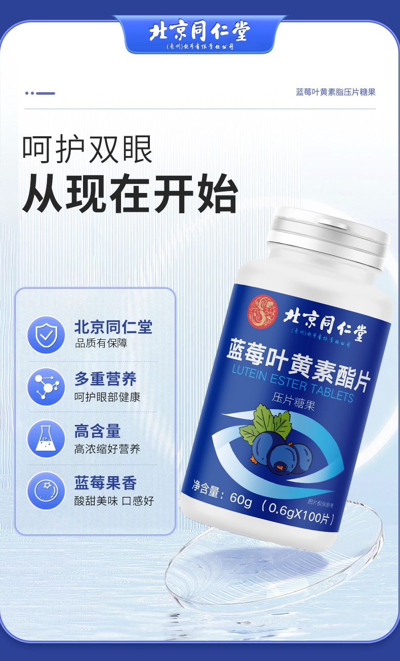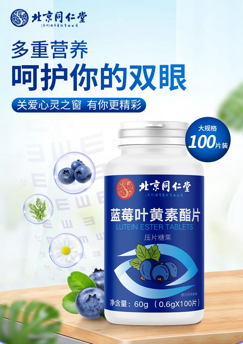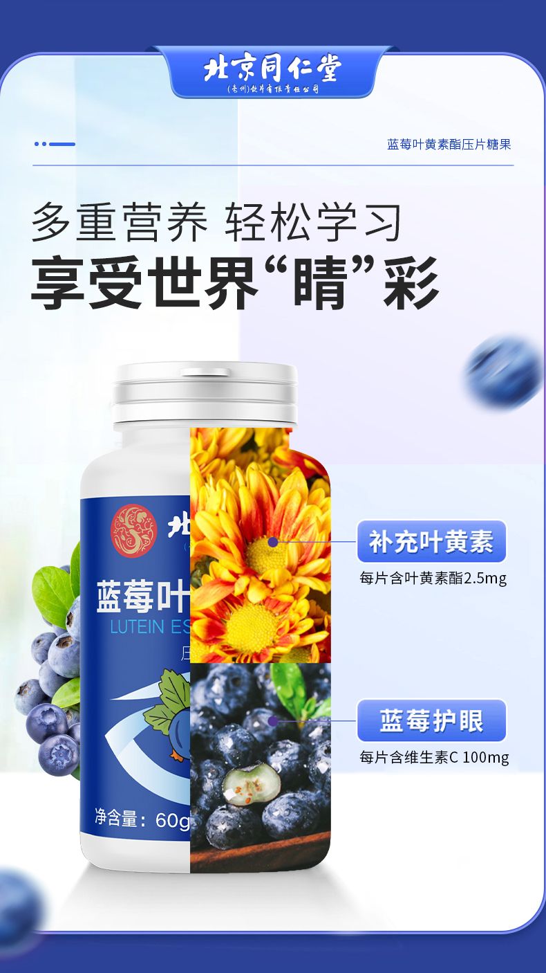 商品名称:2瓶北京同仁堂蓝莓黑加仑叶黄素酯片学生近视儿童老年人呵护视力疲劳200片