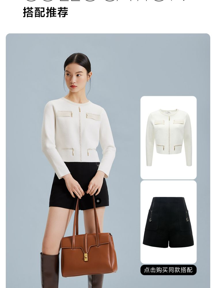 商品名称:【小香风】针织衫女圆领直筒短款套头通勤简约优雅 780049