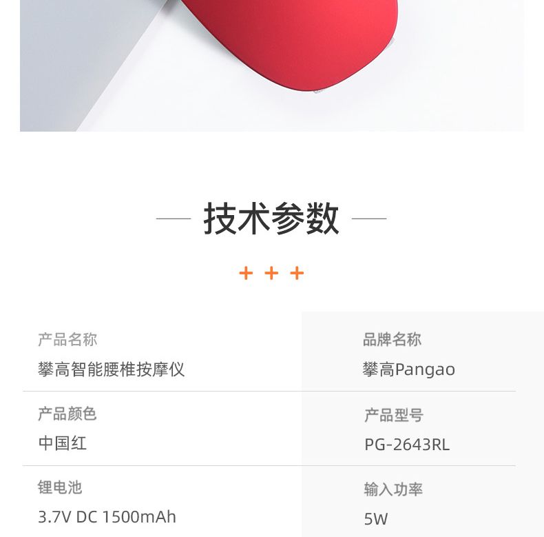 商品名称:攀高 腰腹按摩仪·小蛮腰款,更轻薄贴身,护腰塑身够专业 双脉冲红光热敷腰间盘护腰按摩仪PG-2643RL