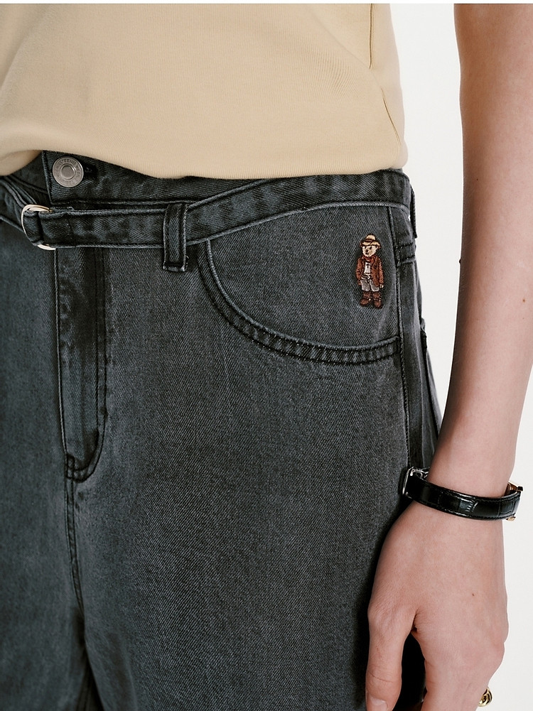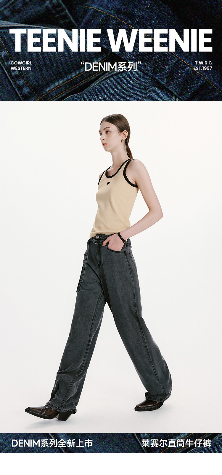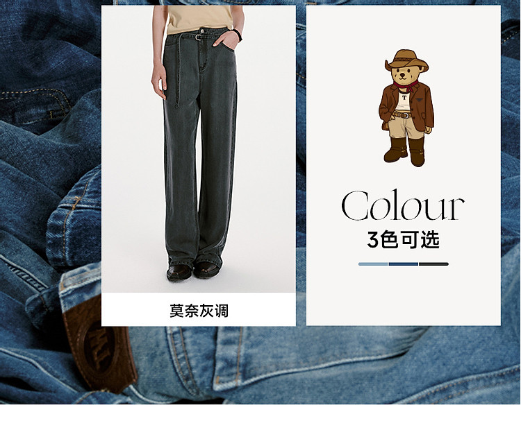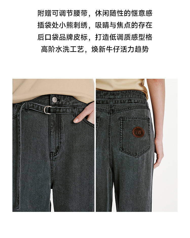 【莱赛尔】牛仔裤女夏薄款直筒小熊刺绣休闲裤女 572353