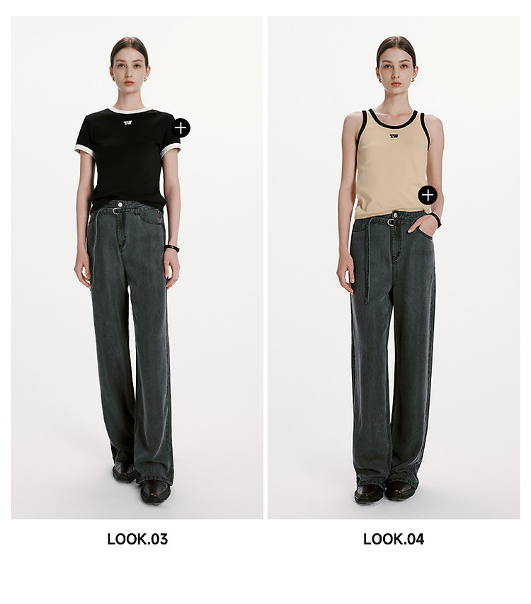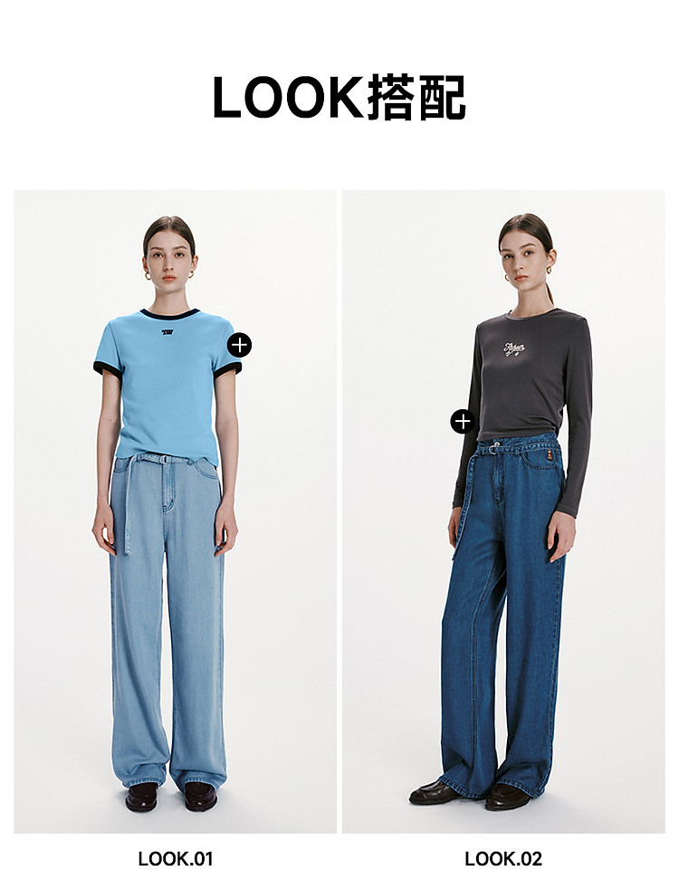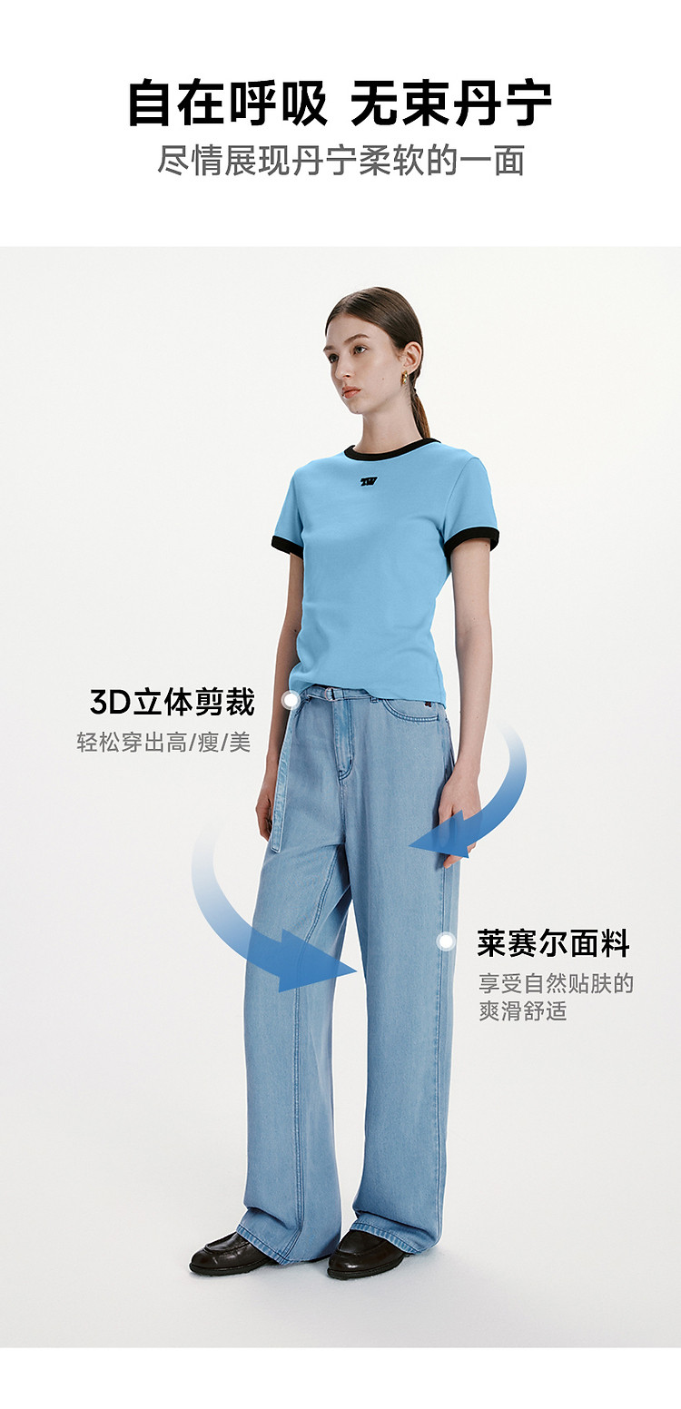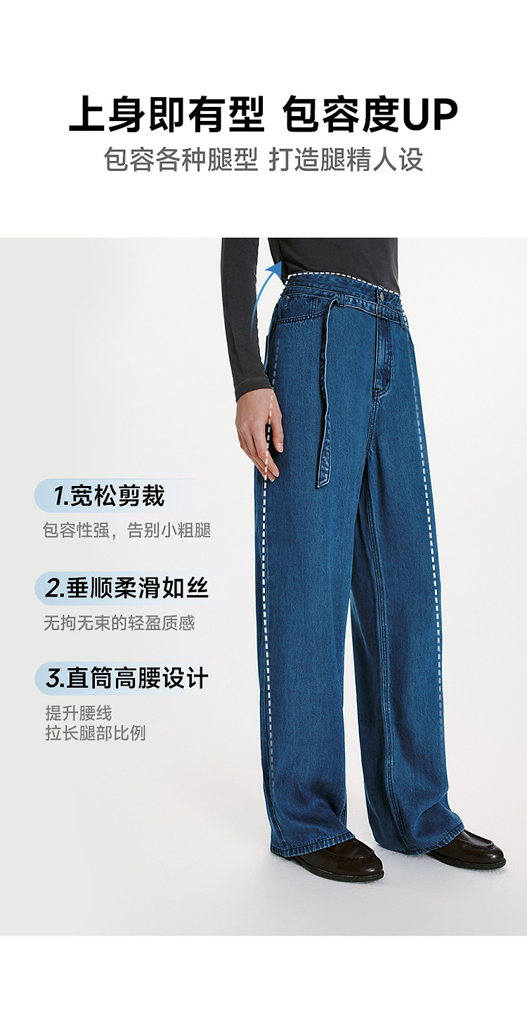 【莱赛尔】牛仔裤女夏薄款直筒小熊刺绣休闲裤女 572353