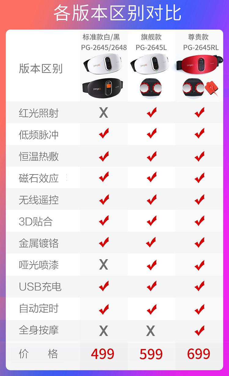 商品名称:攀高(PANGAO)腰部按摩器腰腹部按摩仪 腰椎间盘按摩仪 腰肌劳损加热按摩腰带牵引器护腰带PG-2645RL(红光版)