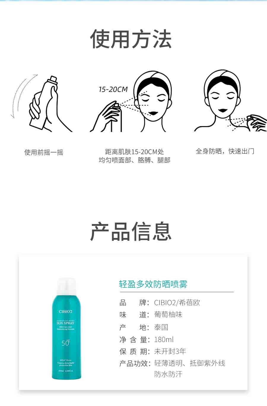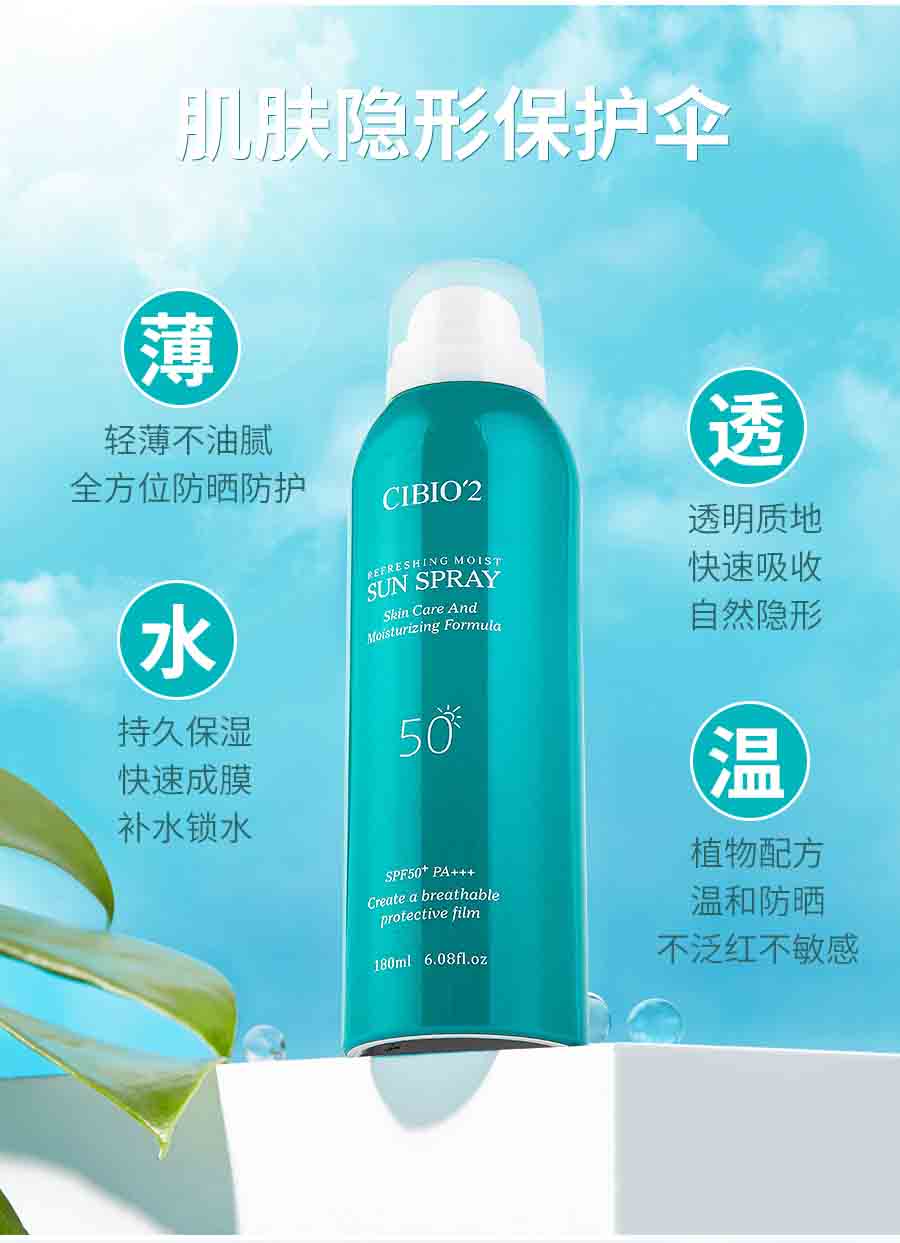 商品名称:希蓓欧 轻盈多效防晒喷雾 180ml/盒绿色