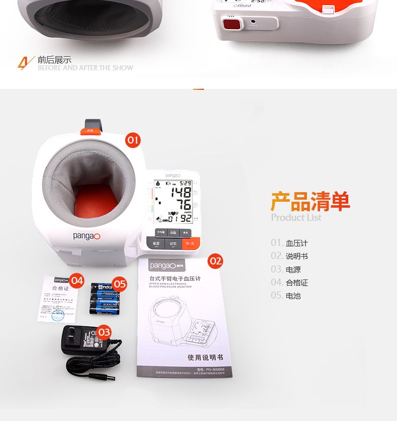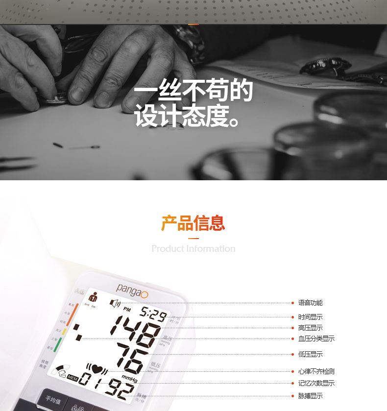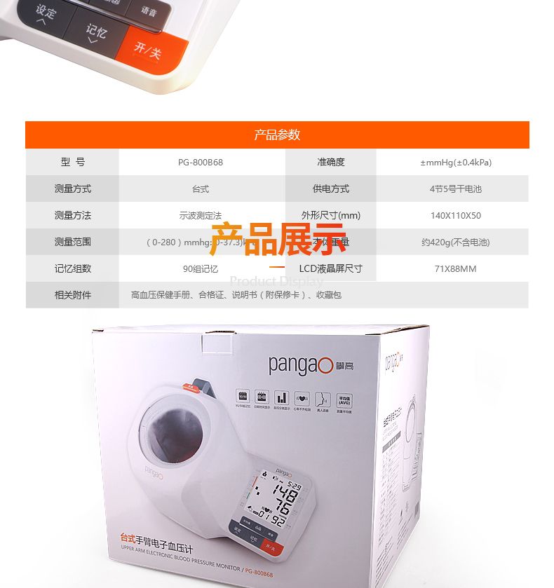 商品名称:攀高台式电子血压计压测量仪 家用 全自动 高精准血压计智能语音播报老人PG-800B68