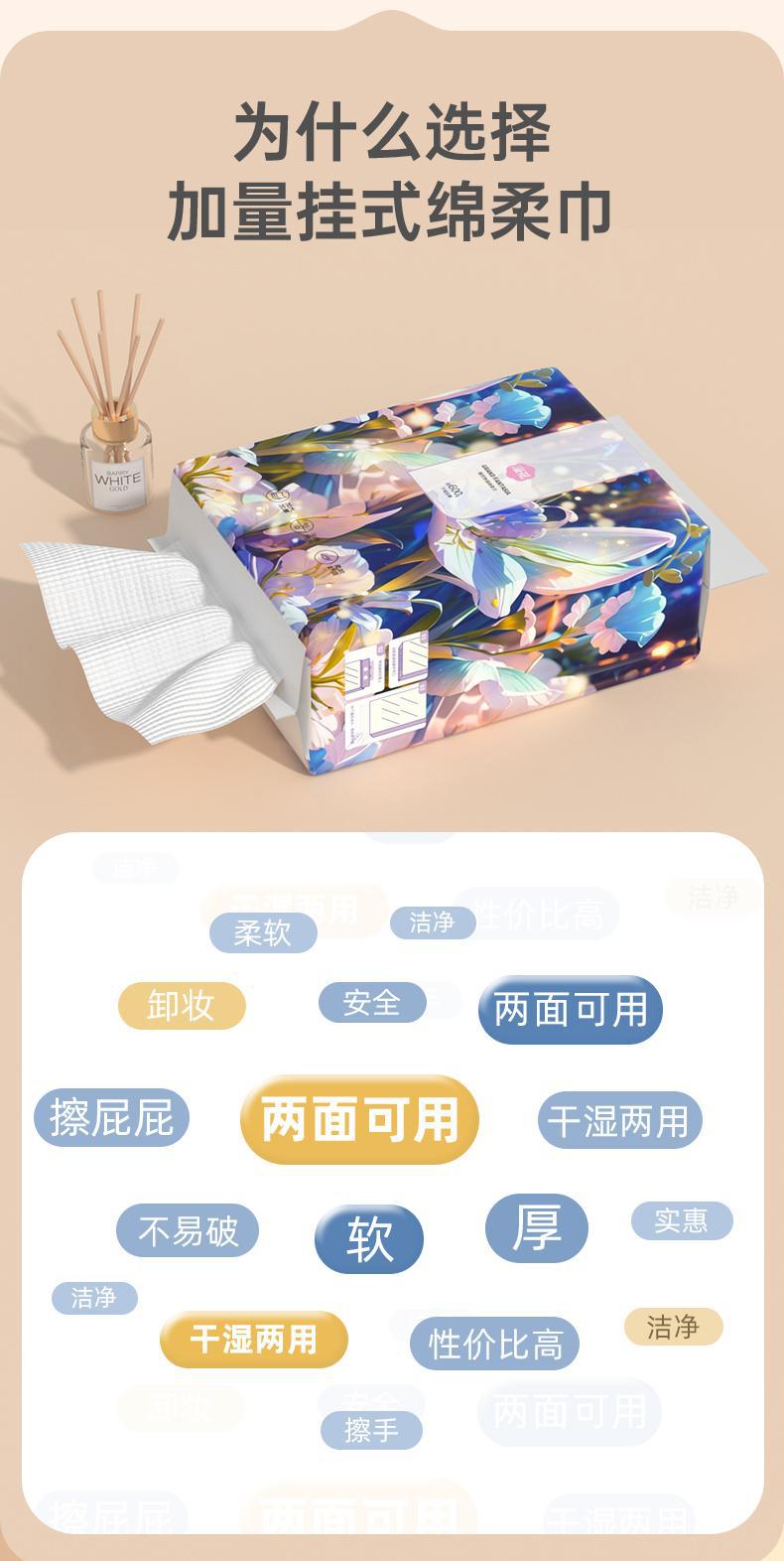 商品名称:漫花洗脸巾纯棉一次性加厚加大悬挂抽取式美容院专用洁面巾擦脸巾