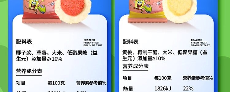 商品名称:海绵宝宝 鲜果粒挞 草莓椰子味 22g