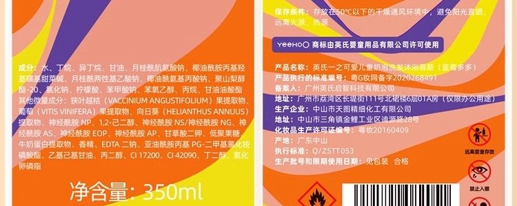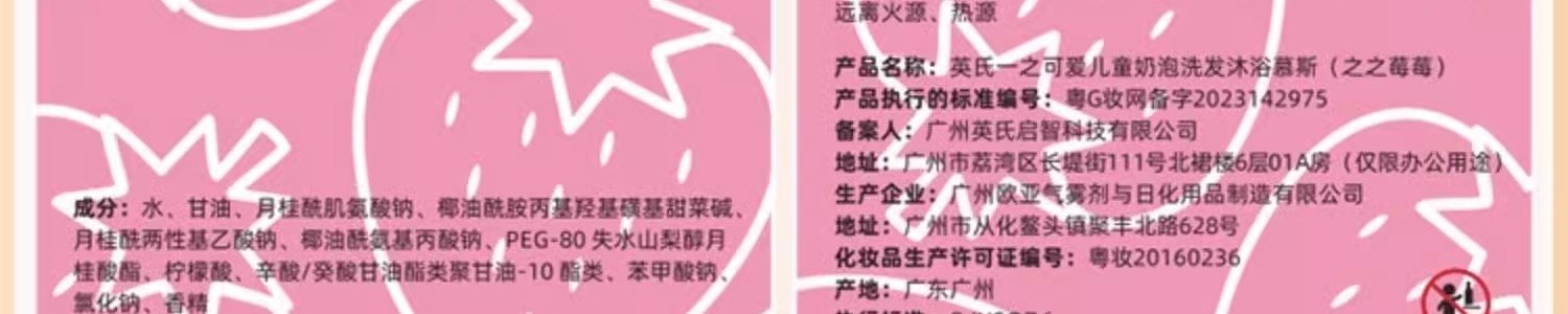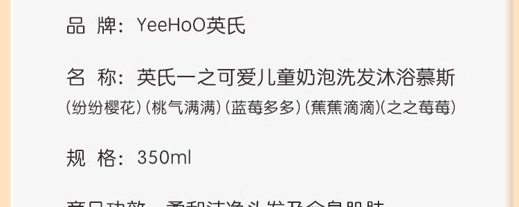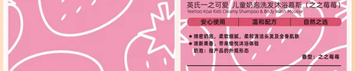 商品名称:英氏(Yeehoo)儿童小奶泡洗发水沐浴泡泡慕斯二合一 草莓味 350ml(新旧包装随机)