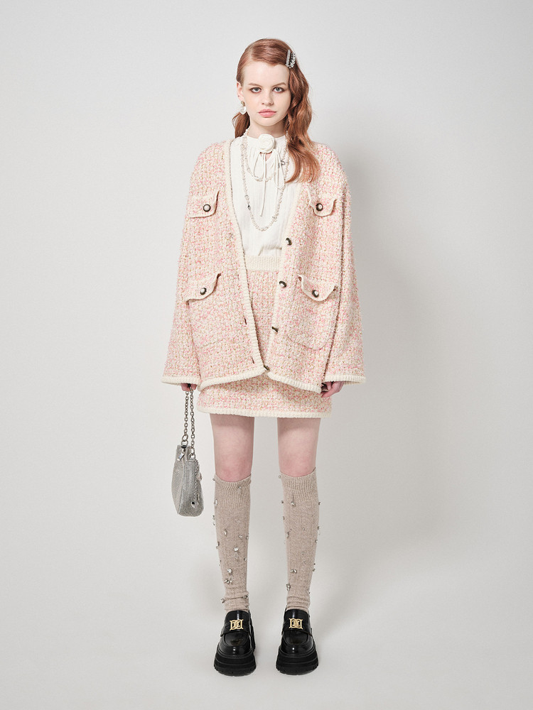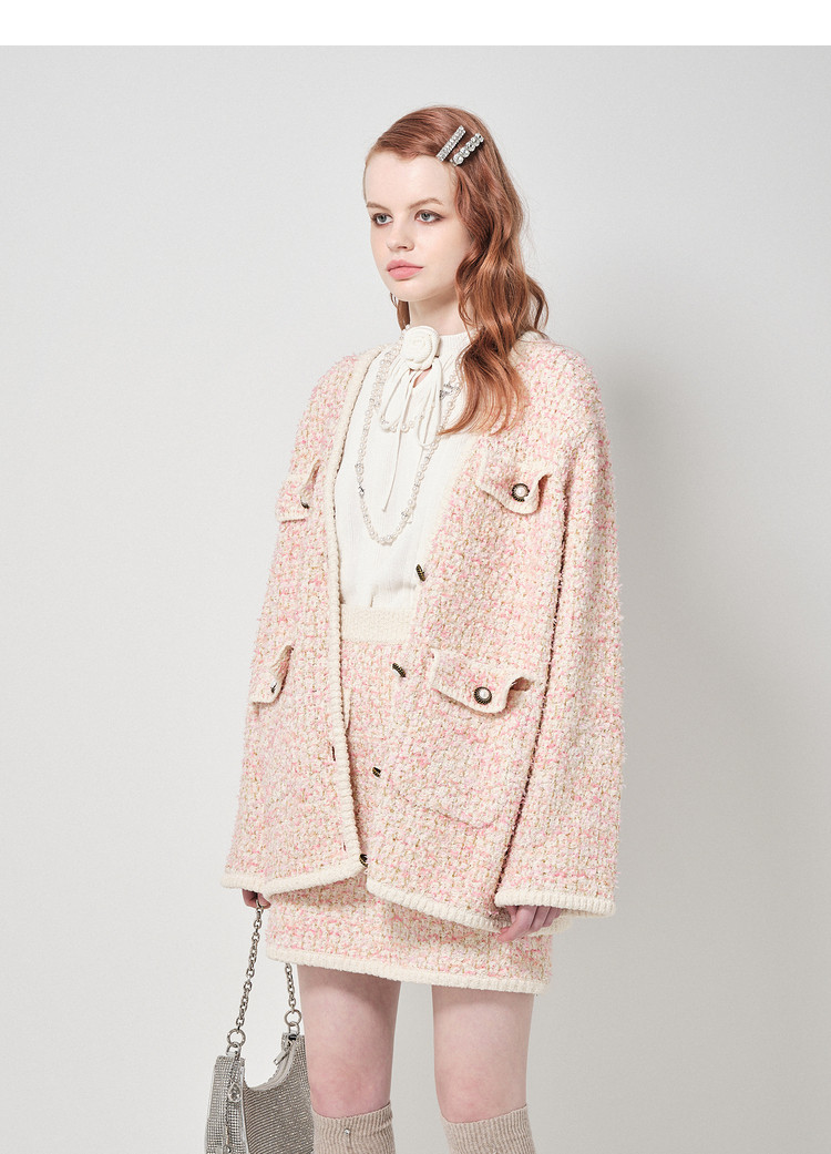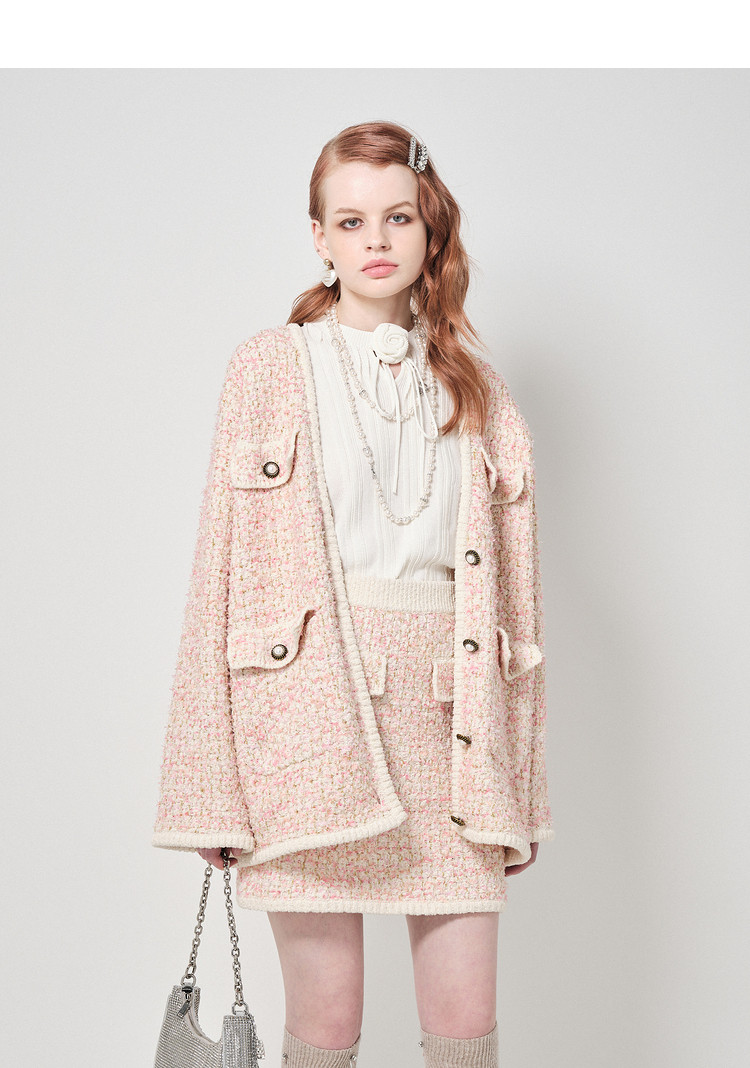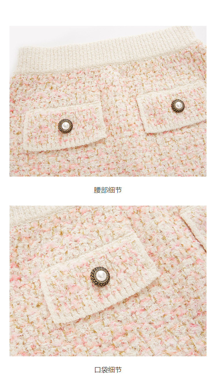 地素针织半裙秋冬小香风混织纱线短裙女 679051