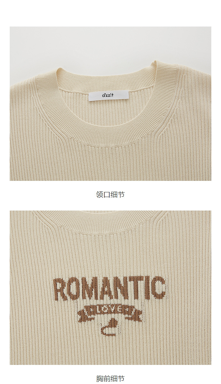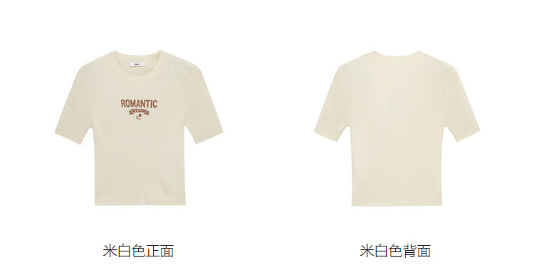 商品名称:地素秋套头针织衫字母提花圆领短袖修身短上衣女 255051