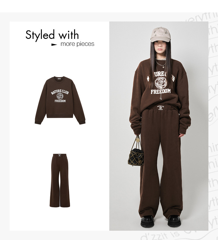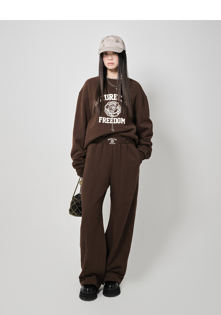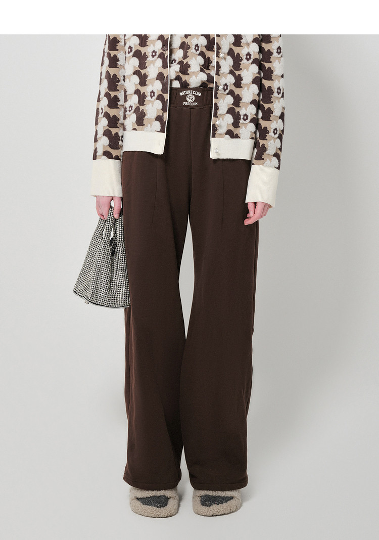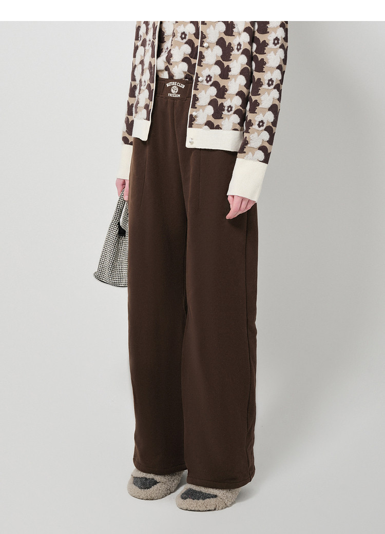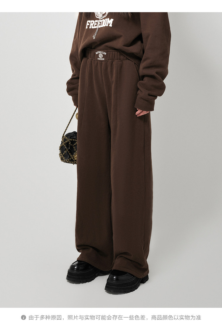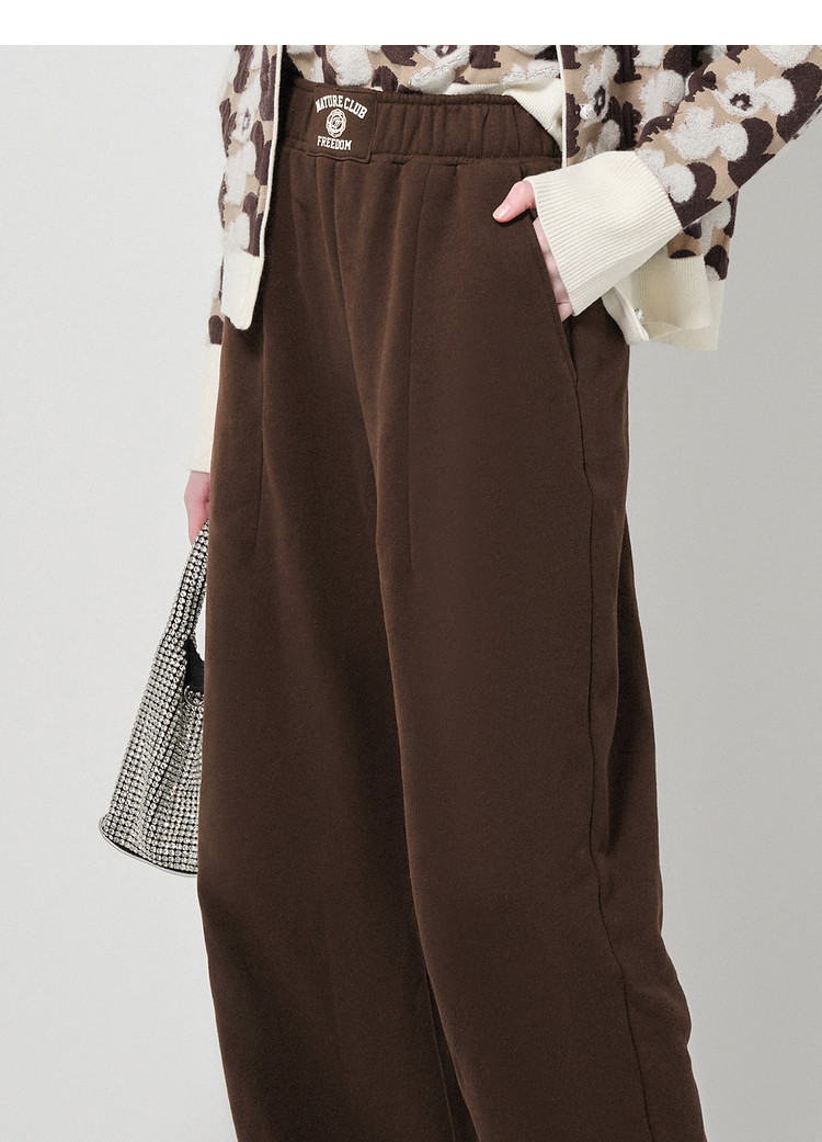 地素加绒卫裤秋冬季专柜运动风松紧腰休闲阔腿裤女 427083