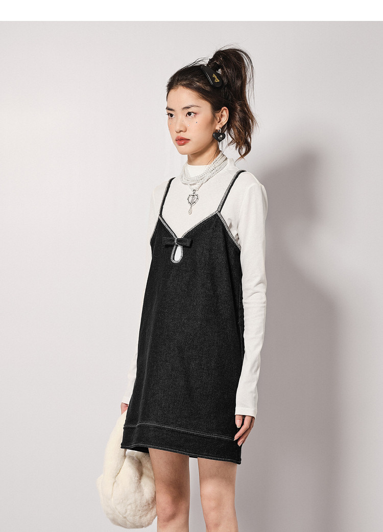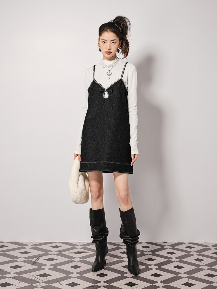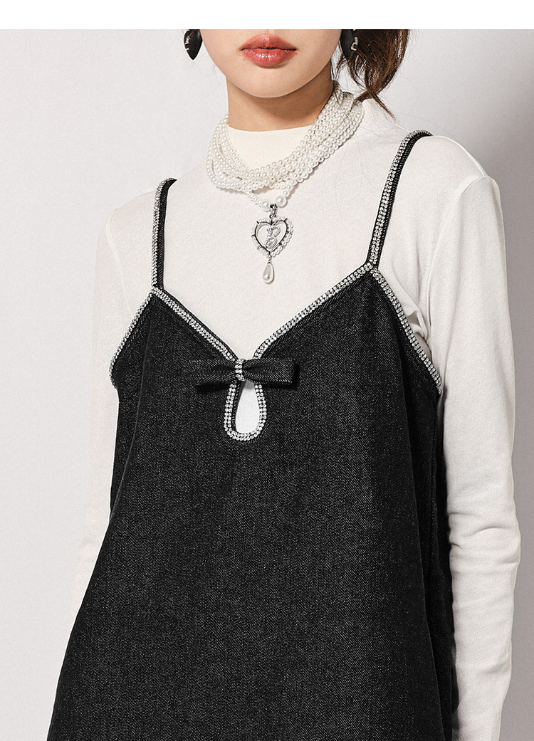 地素秋冬牛仔连衣裙重工钉钻设计外搭吊带裙女 789451