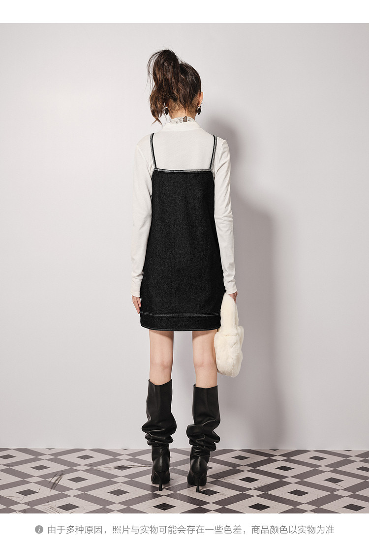 商品名称:地素秋冬牛仔连衣裙重工钉钻设计外搭吊带裙女 789451