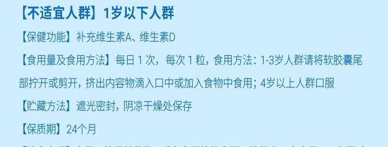 商品名称:星鲨 娃福维生素AD软胶囊 24粒/盒