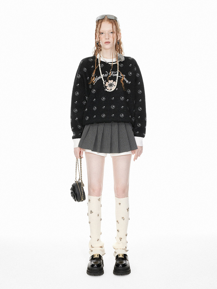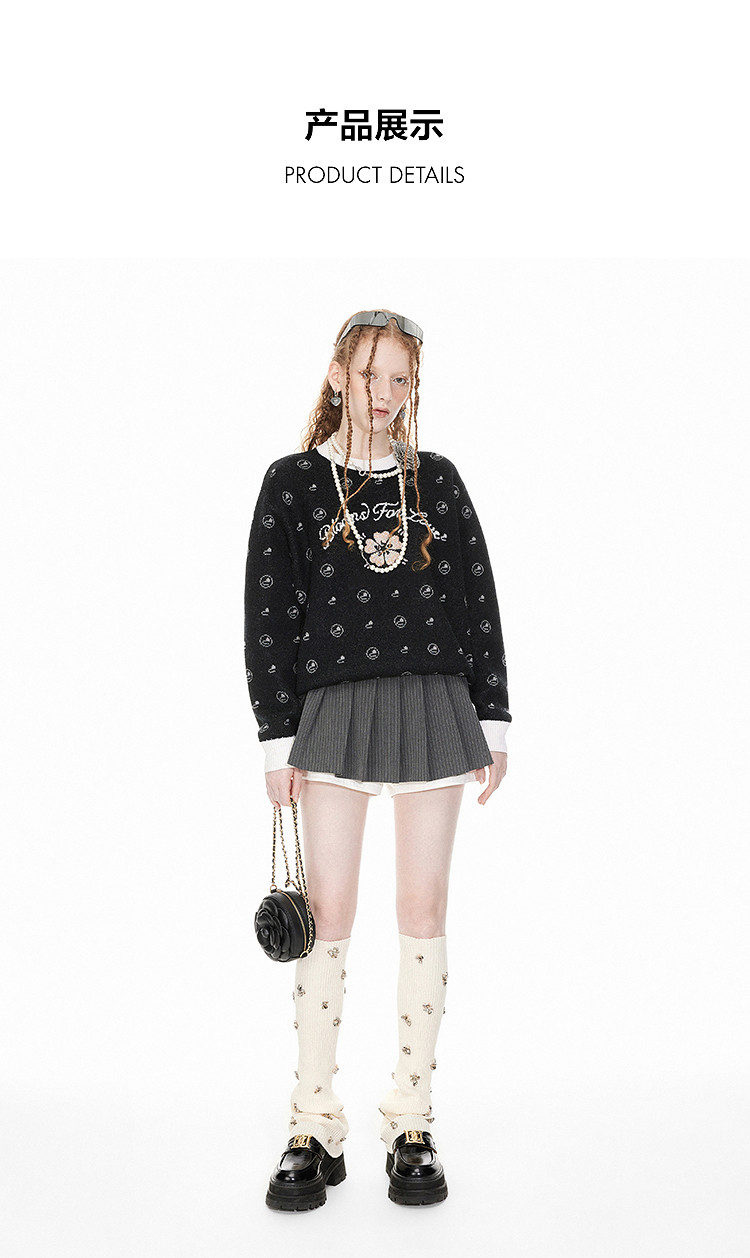 地素针织套头衫春季专柜圆领珠片绣设计提花上衣女 408651