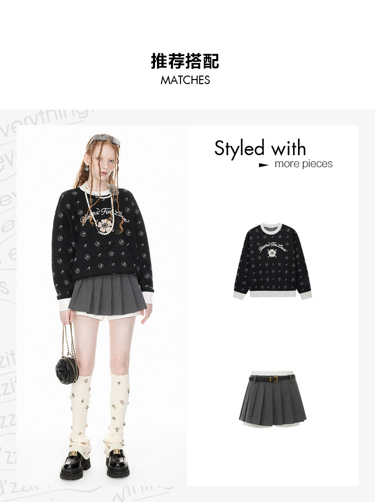 商品名称:地素针织套头衫春季专柜圆领珠片绣设计提花上衣女 408651