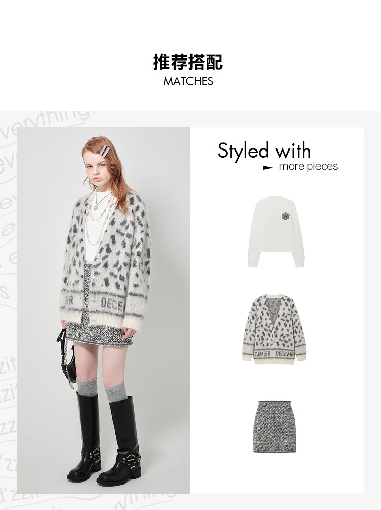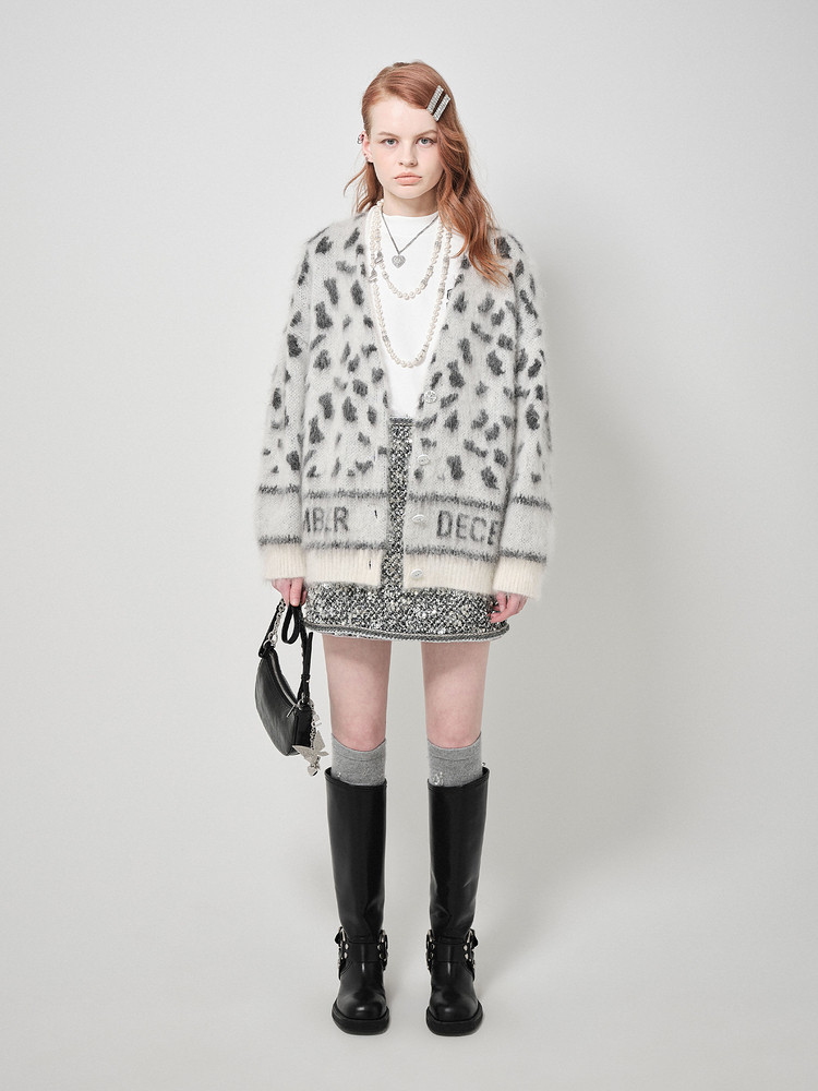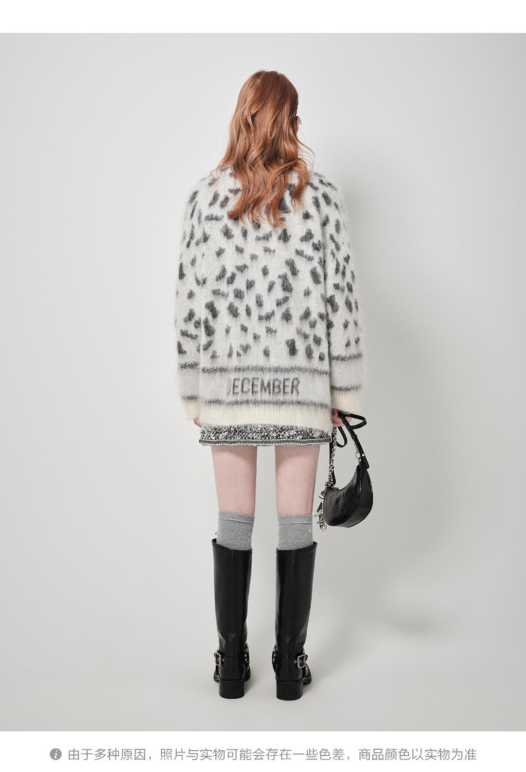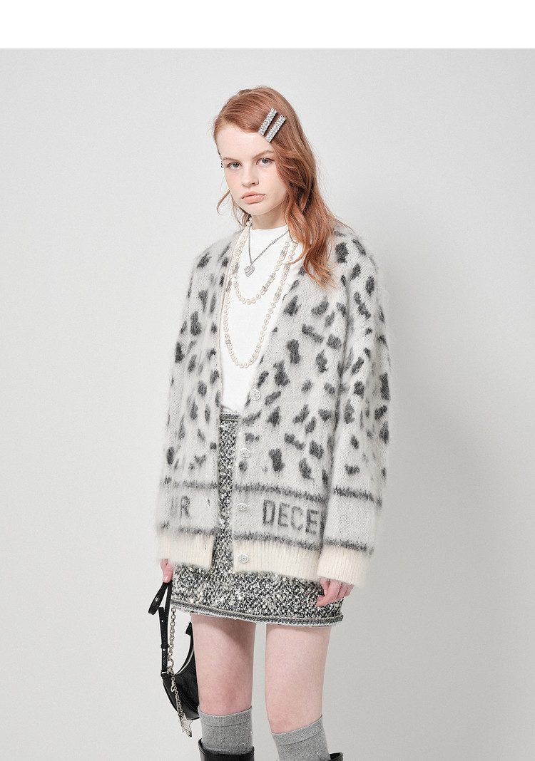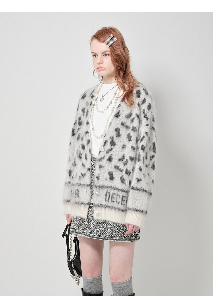 地素针织提花外套春专柜冬日潮流豹纹开衫外套女 026635
