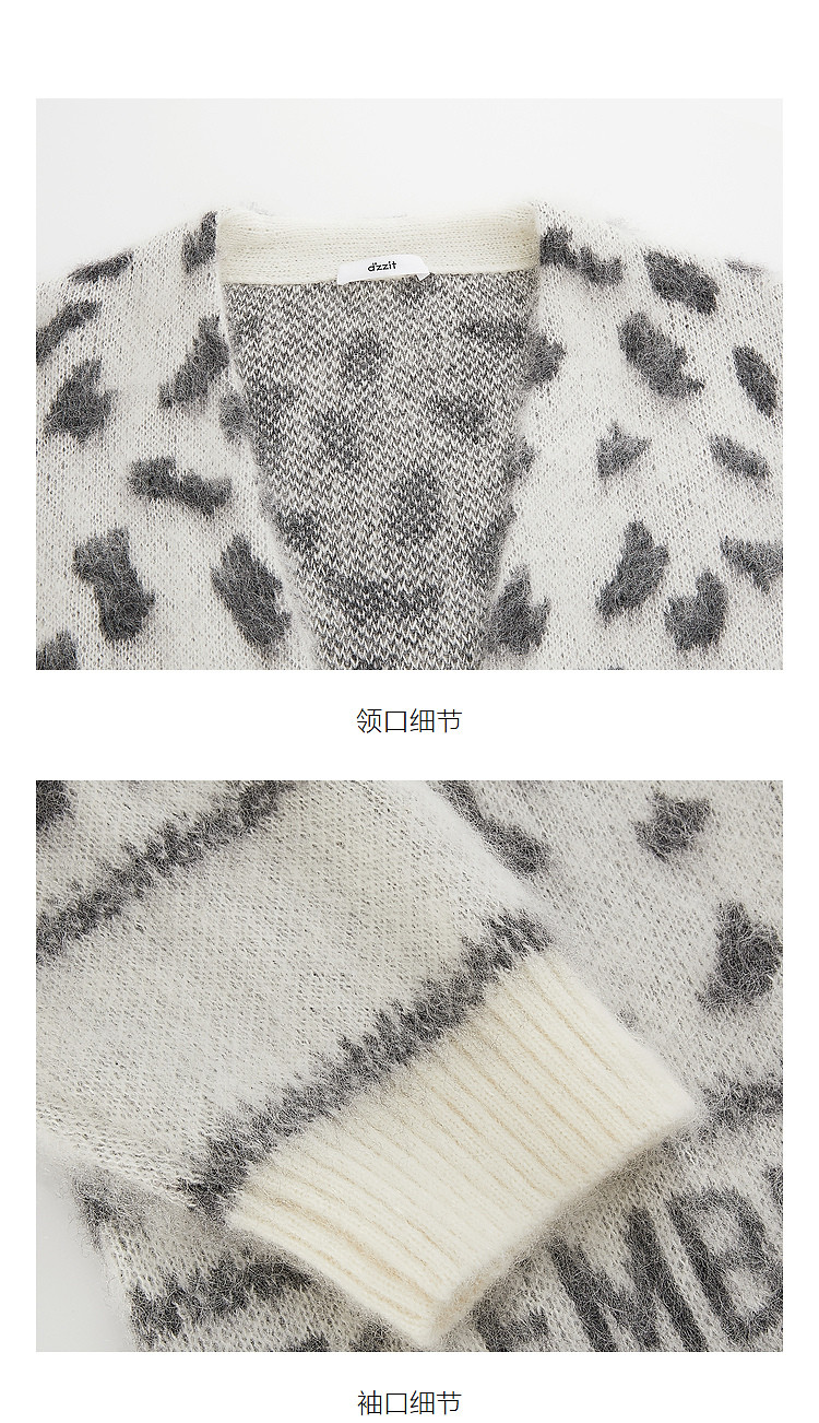 商品名称:地素针织提花外套春专柜冬日潮流豹纹开衫外套女 026635