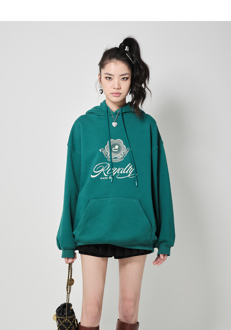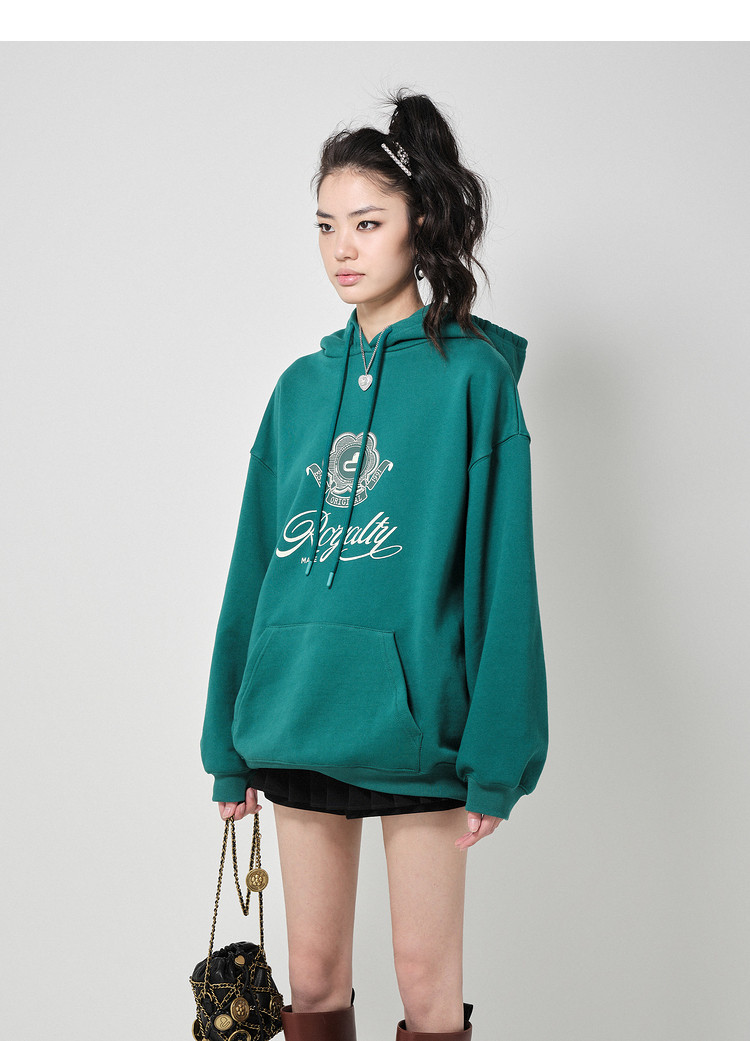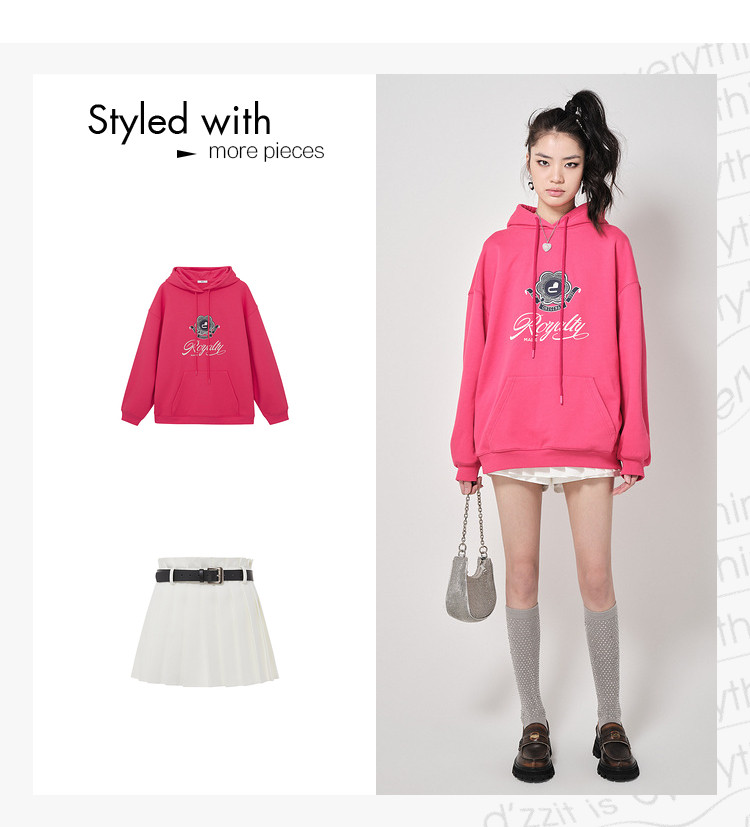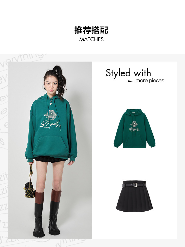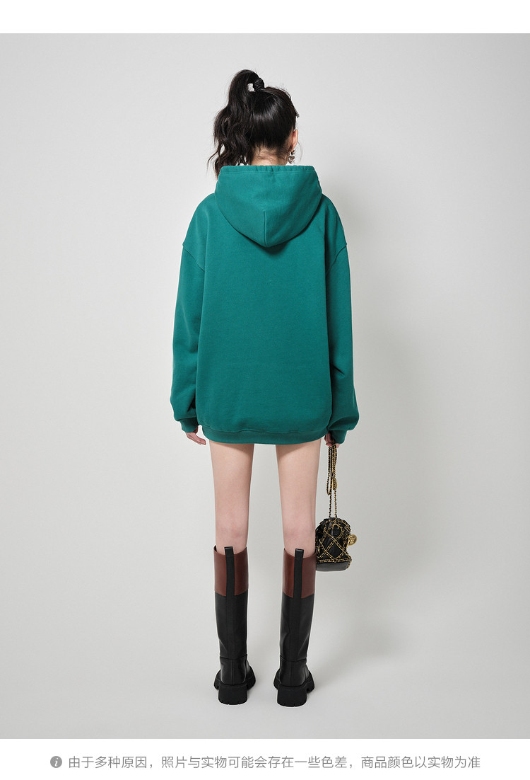 商品名称:地素卫衣裙秋冬季专柜美式运动宽松连帽印花上衣女 248203