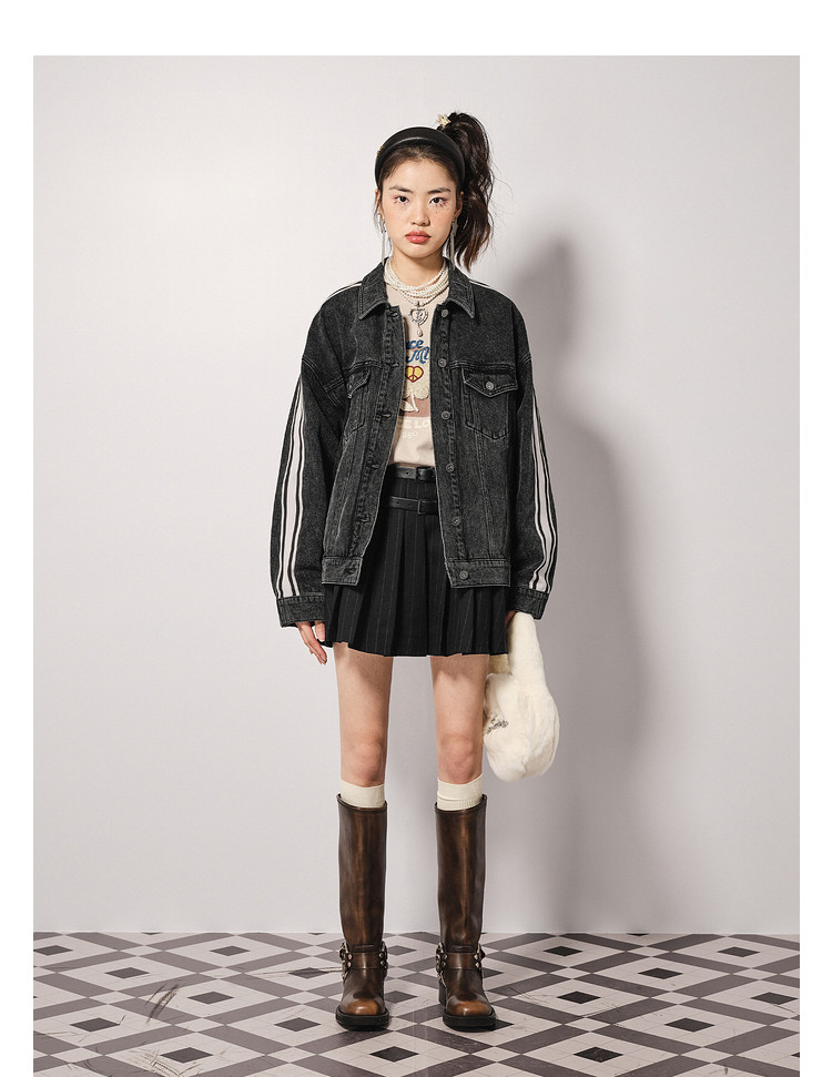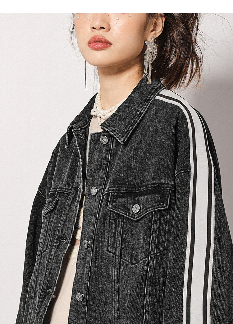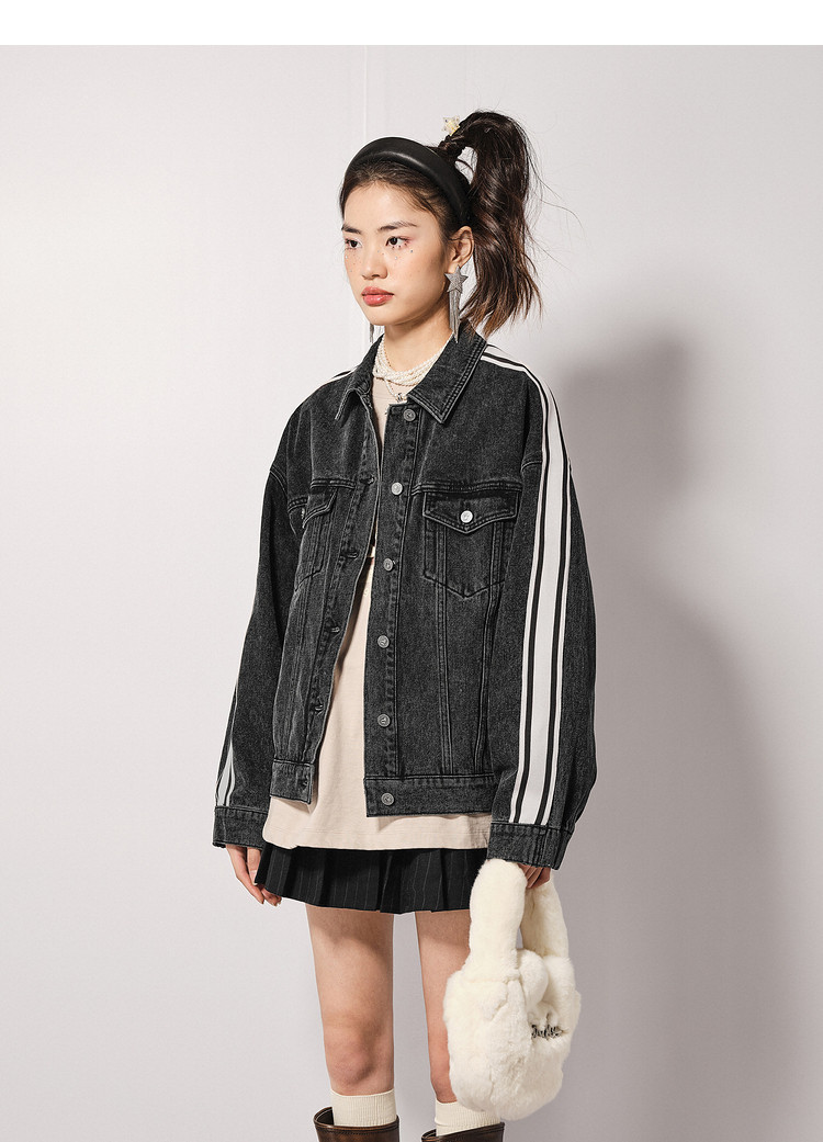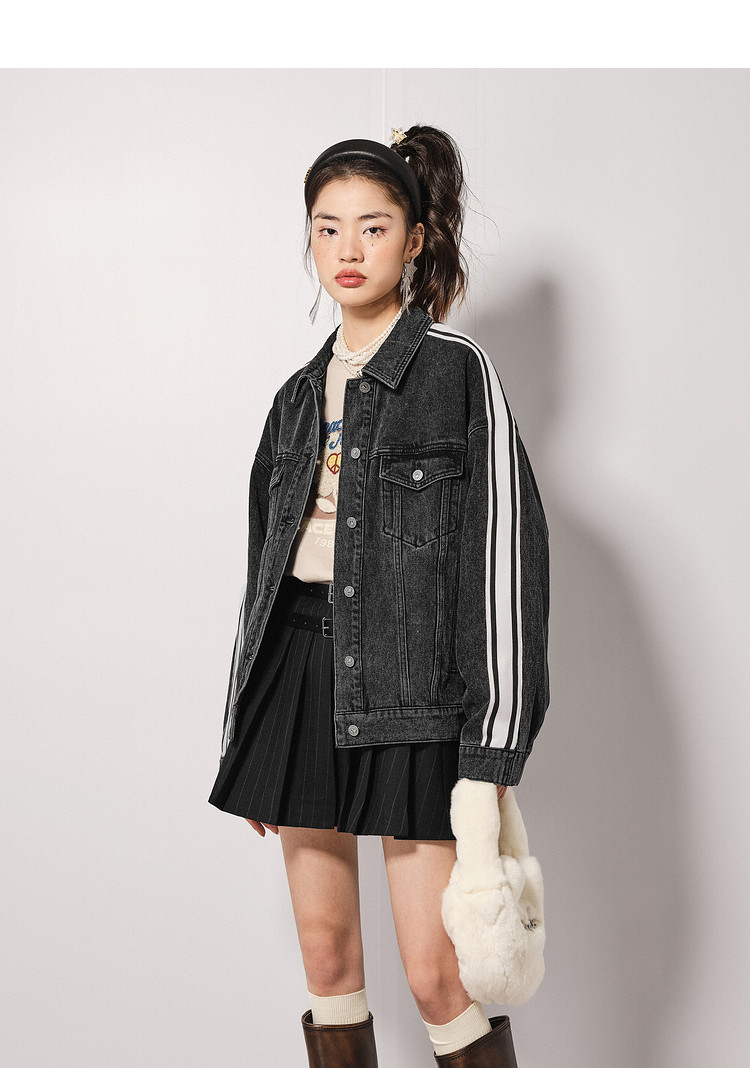 地素秋冬专柜牛仔外套运动风拼色设计女 915851