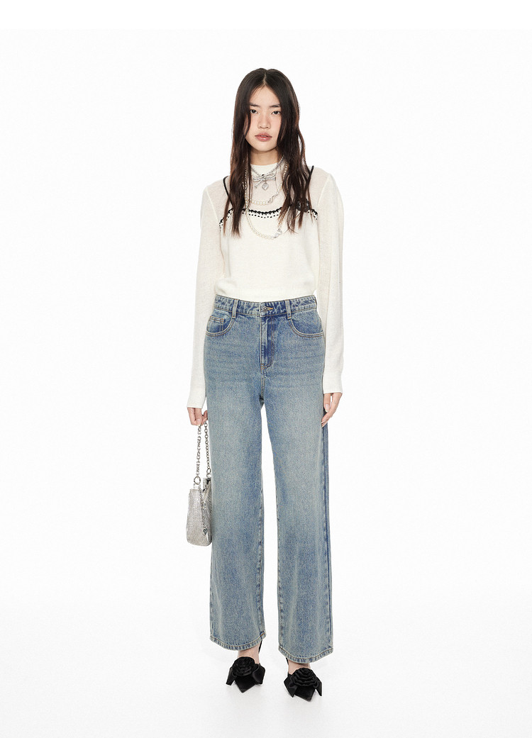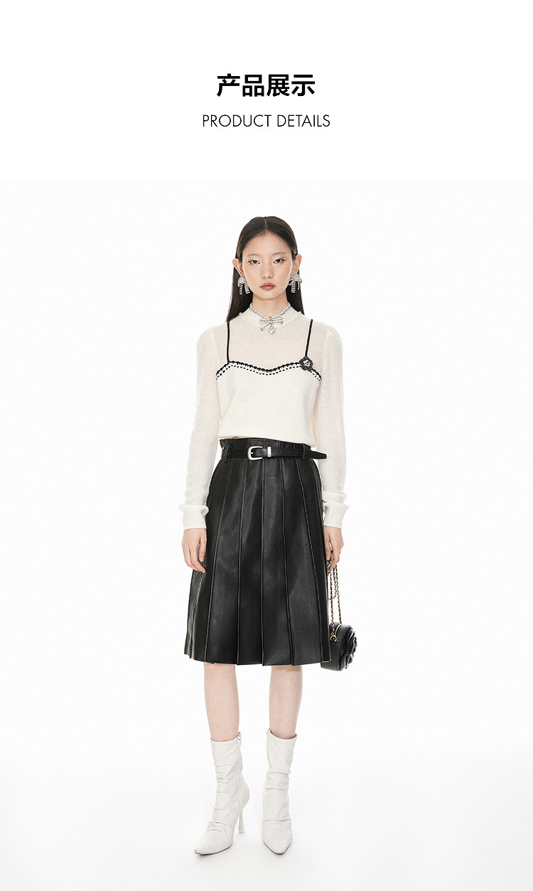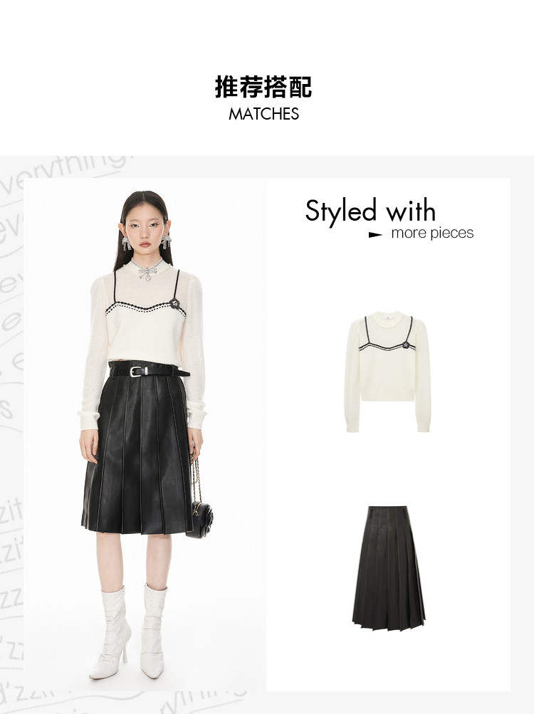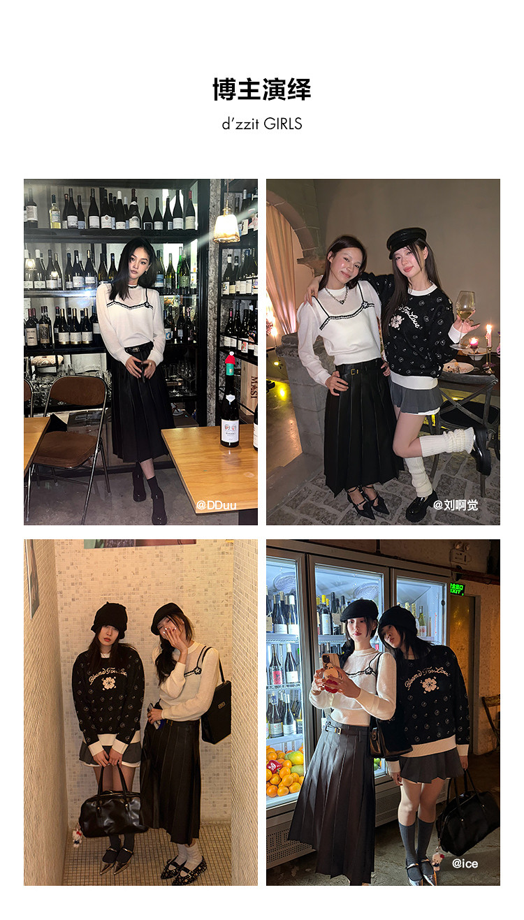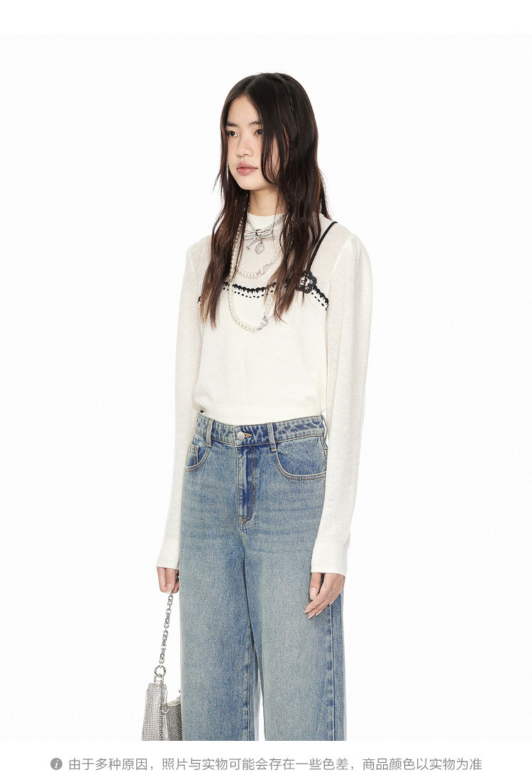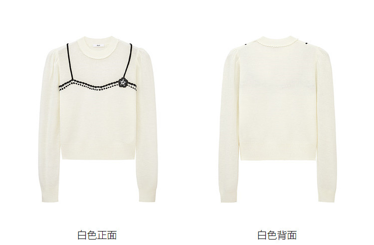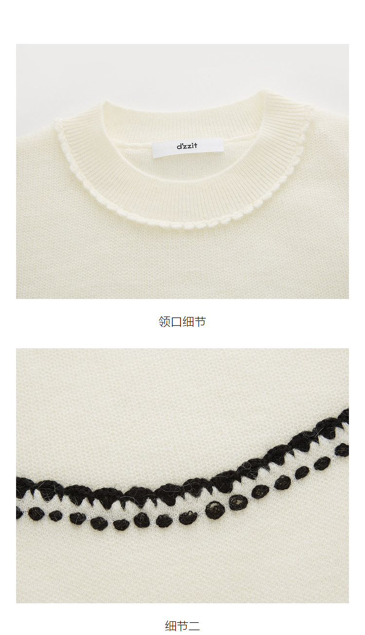商品名称:地素针织套头衫春季专柜假两件趣玩刺绣撞色圆领毛衣毛衫女 490571