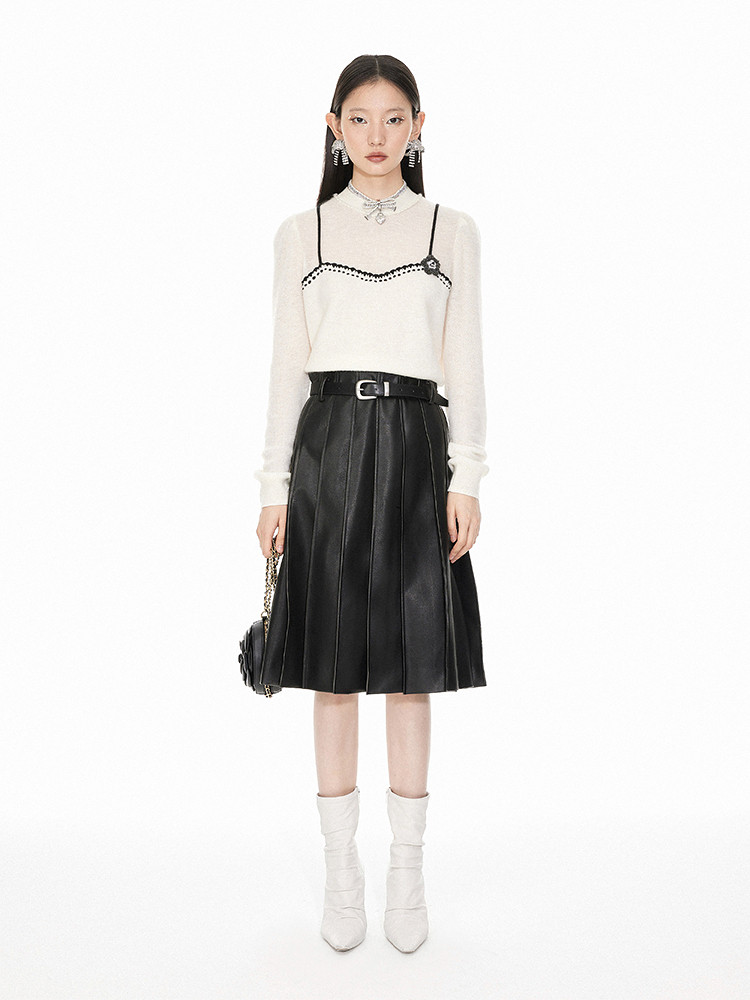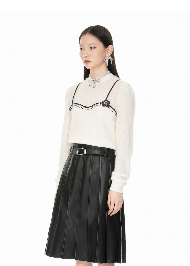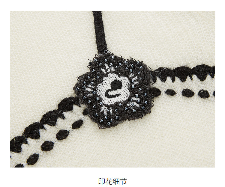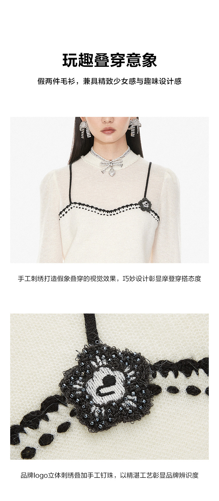 地素针织套头衫春季专柜假两件趣玩刺绣撞色圆领毛衣毛衫女 490571