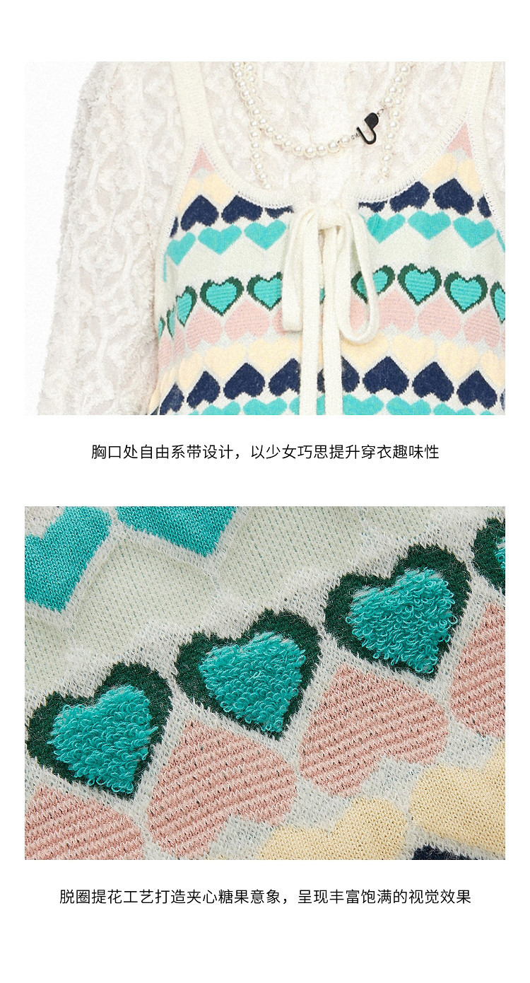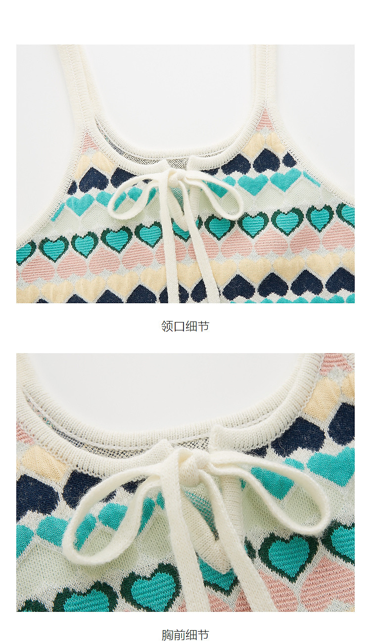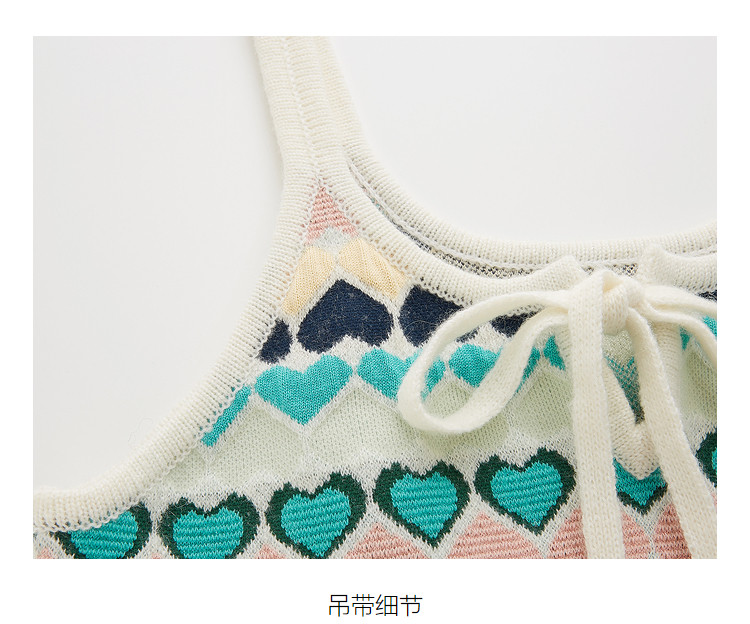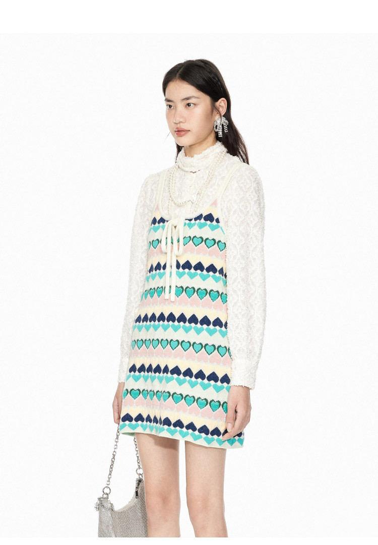 地素针织连衣裙春秋撞色爱心提花系带吊带短裙女 302475