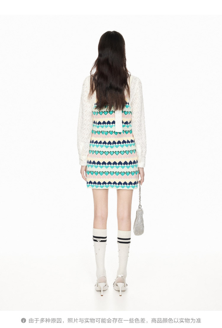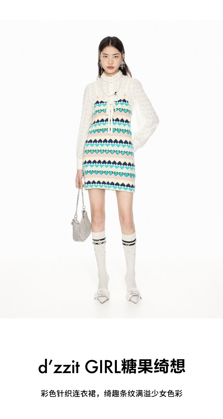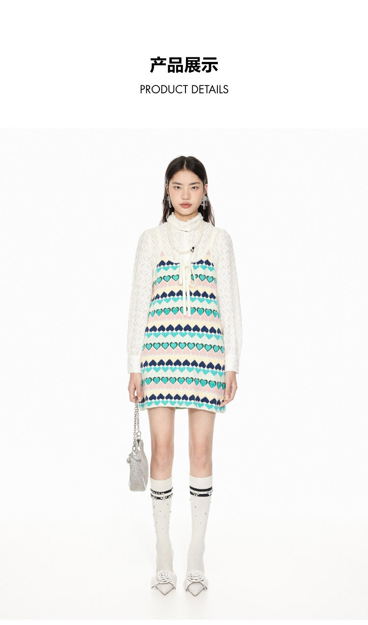 商品名称:地素针织连衣裙春秋撞色爱心提花系带吊带短裙女 302475
