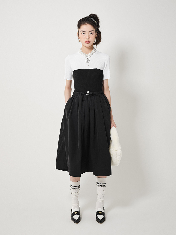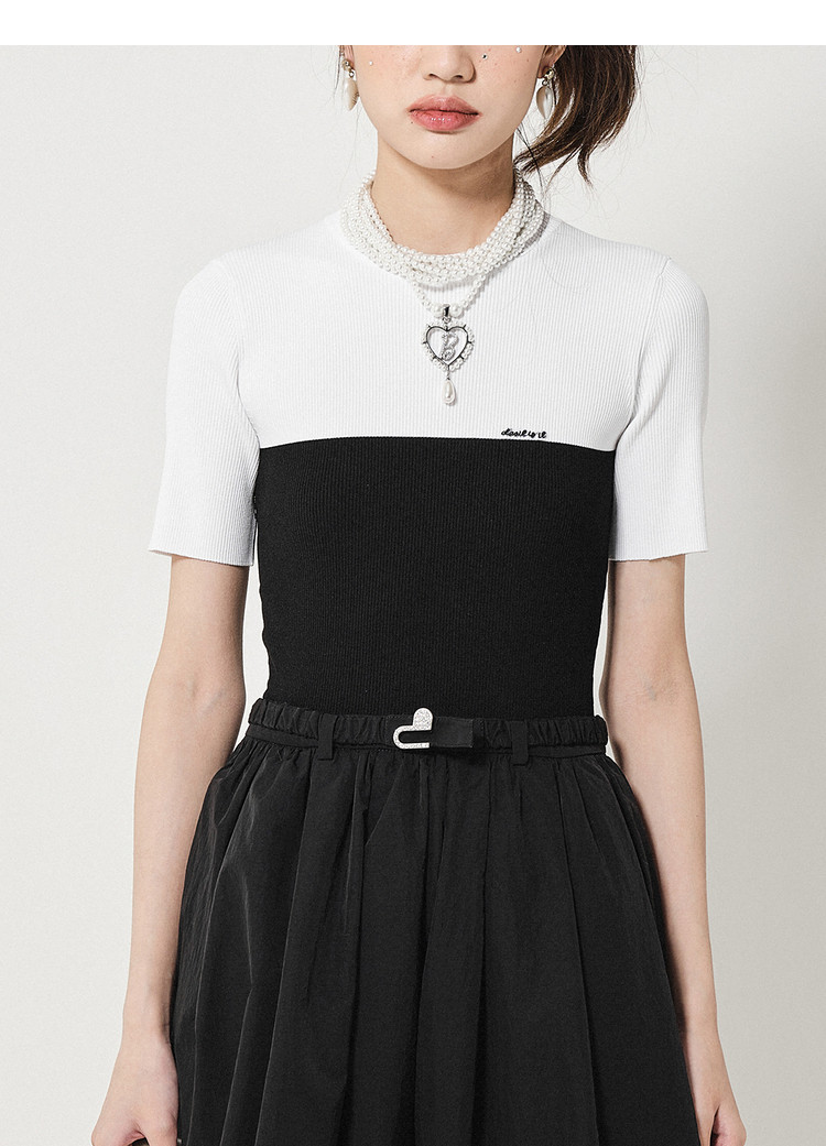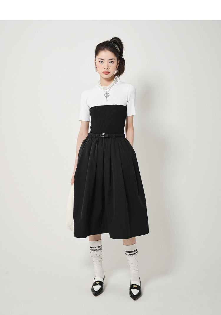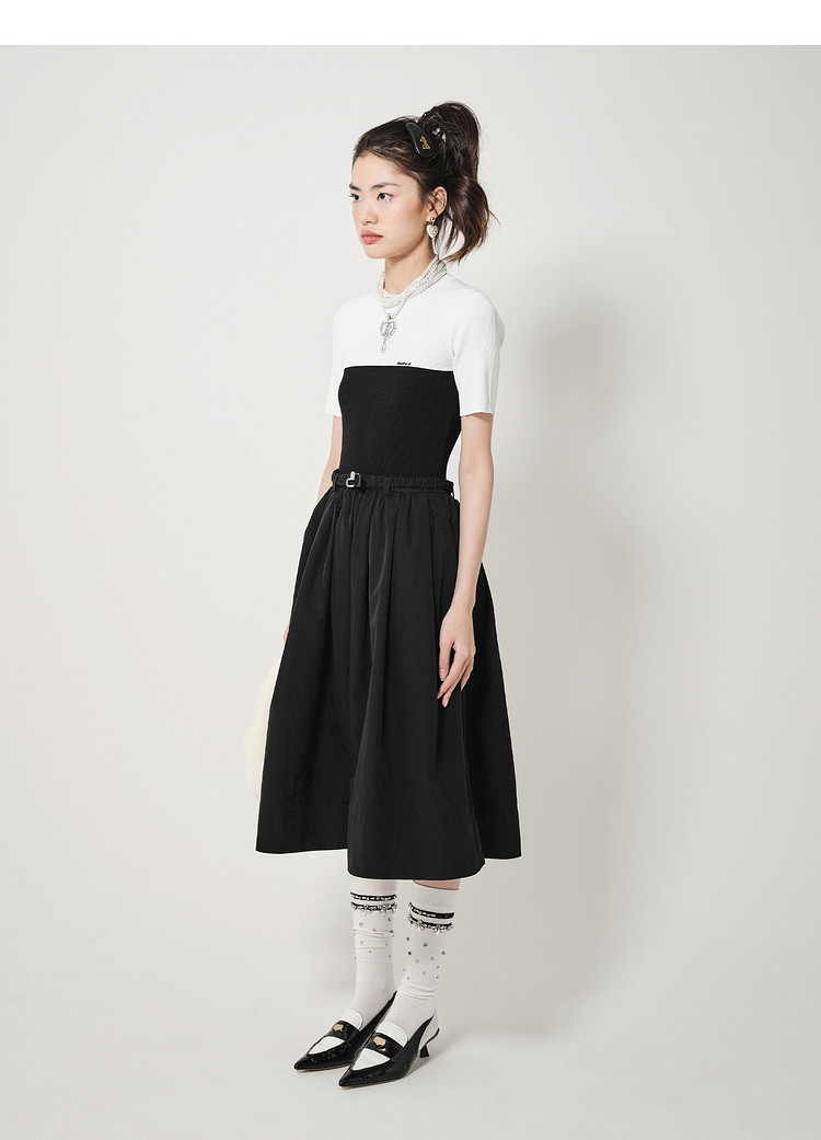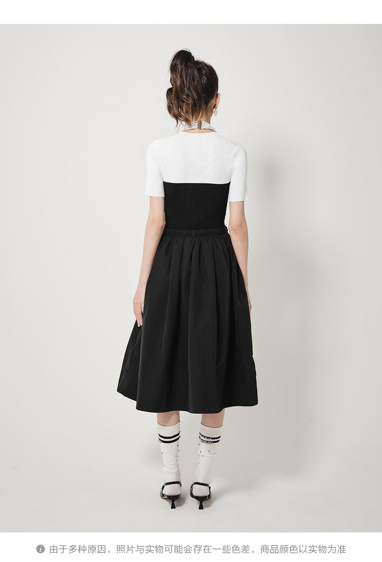 商品名称:地素连衣裙春秋季专柜短袖黑白针织拼接收腰连衣裙女 988619