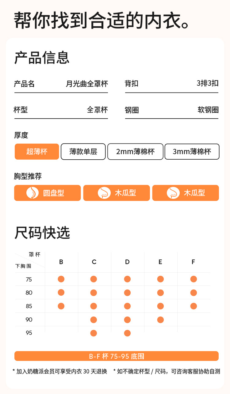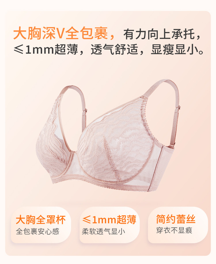 商品名称:【包裹全罩杯】月光曲超薄单层文胸大胸显小显瘦内衣法式 078926