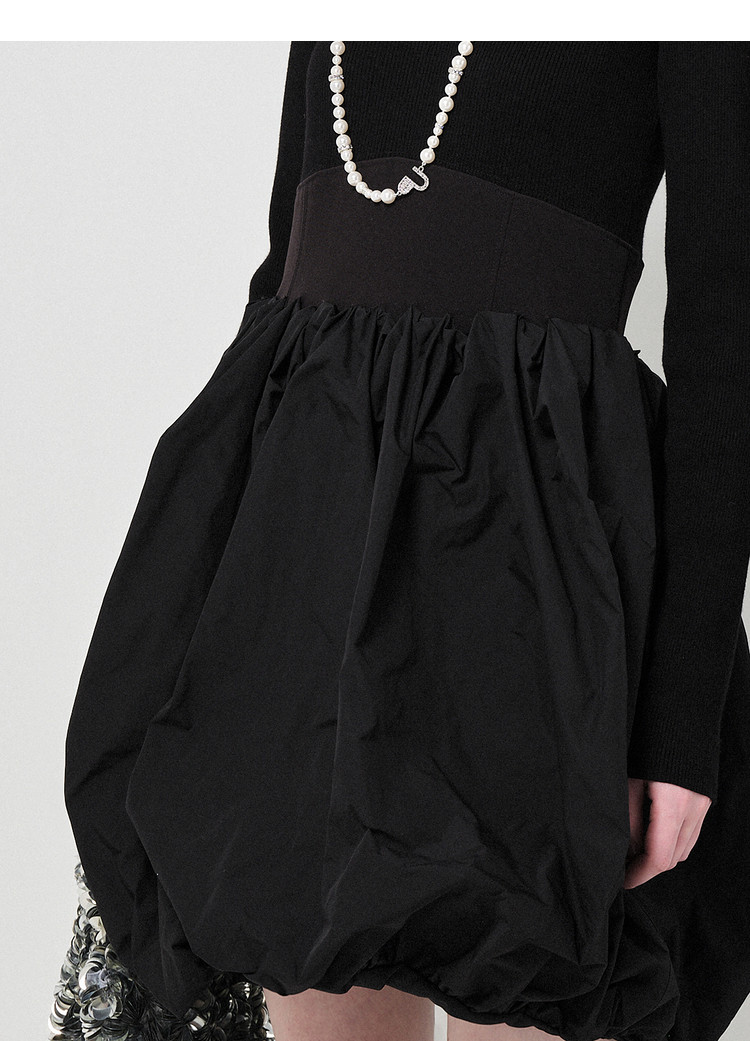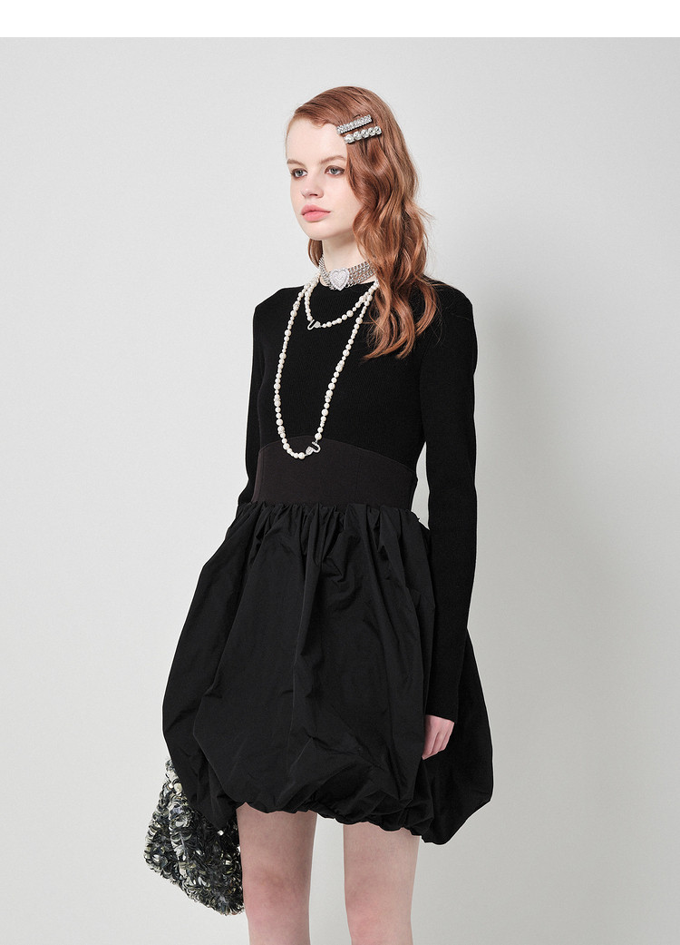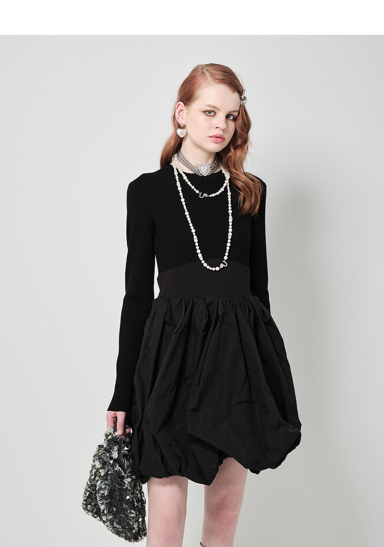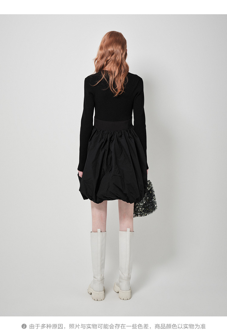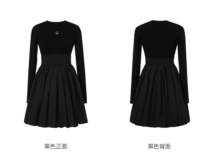商品名称:地素长袖连衣裙秋冬修身针织拼接泡泡裙女 548619