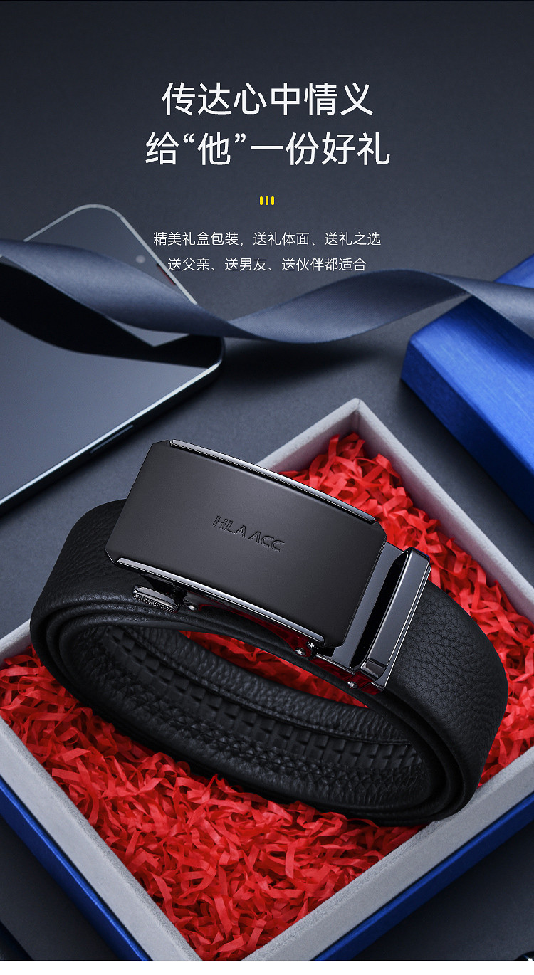 商品名称:头层牛皮男士百搭腰带自动扣轻奢礼盒送男友送老公 822422