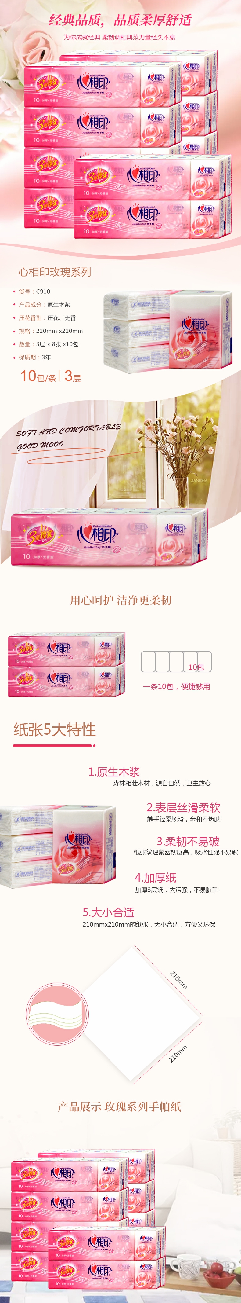 商品名称:心相印 玫红三层纸手帕 加厚升级版10包 C910