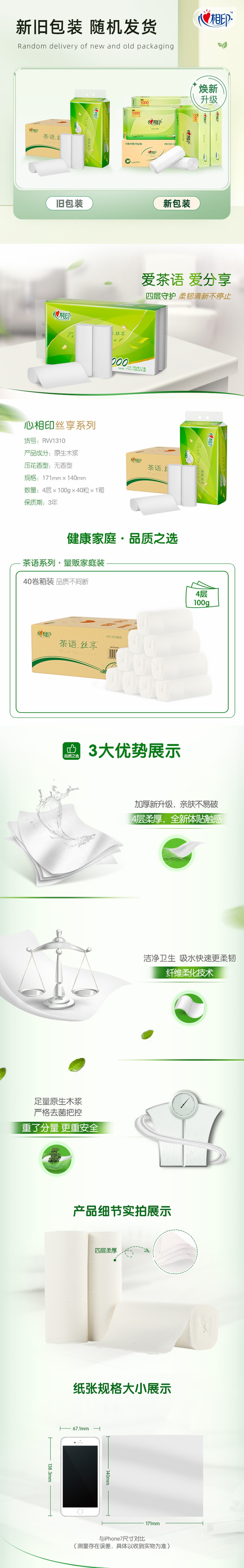 商品名称:心相印 丝享四层无芯卫生纸10卷 (100g/卷)RW1310