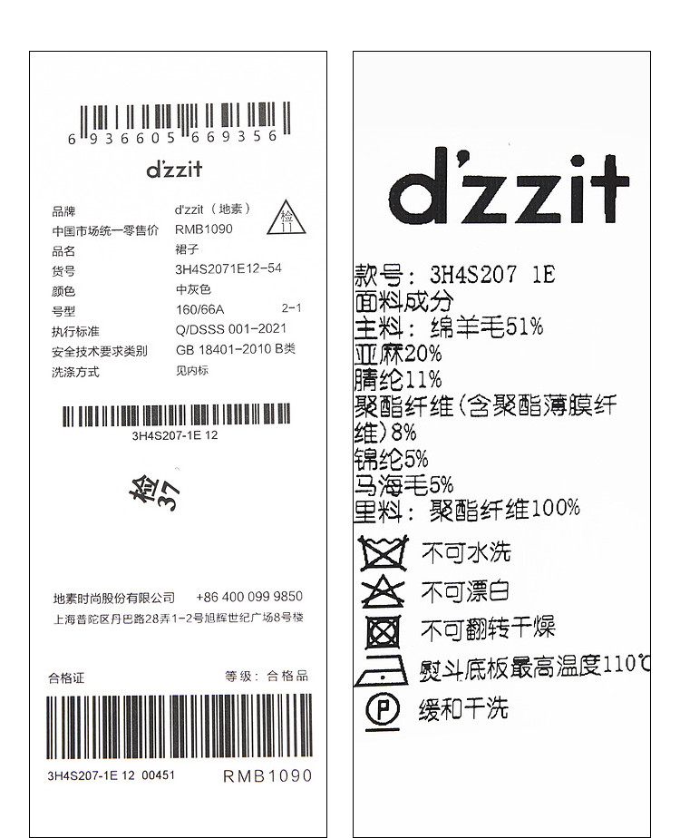 商品名称:地素休闲半裙秋冬气质高腰短裙女 230219