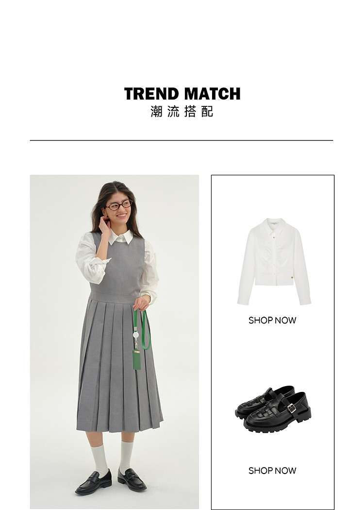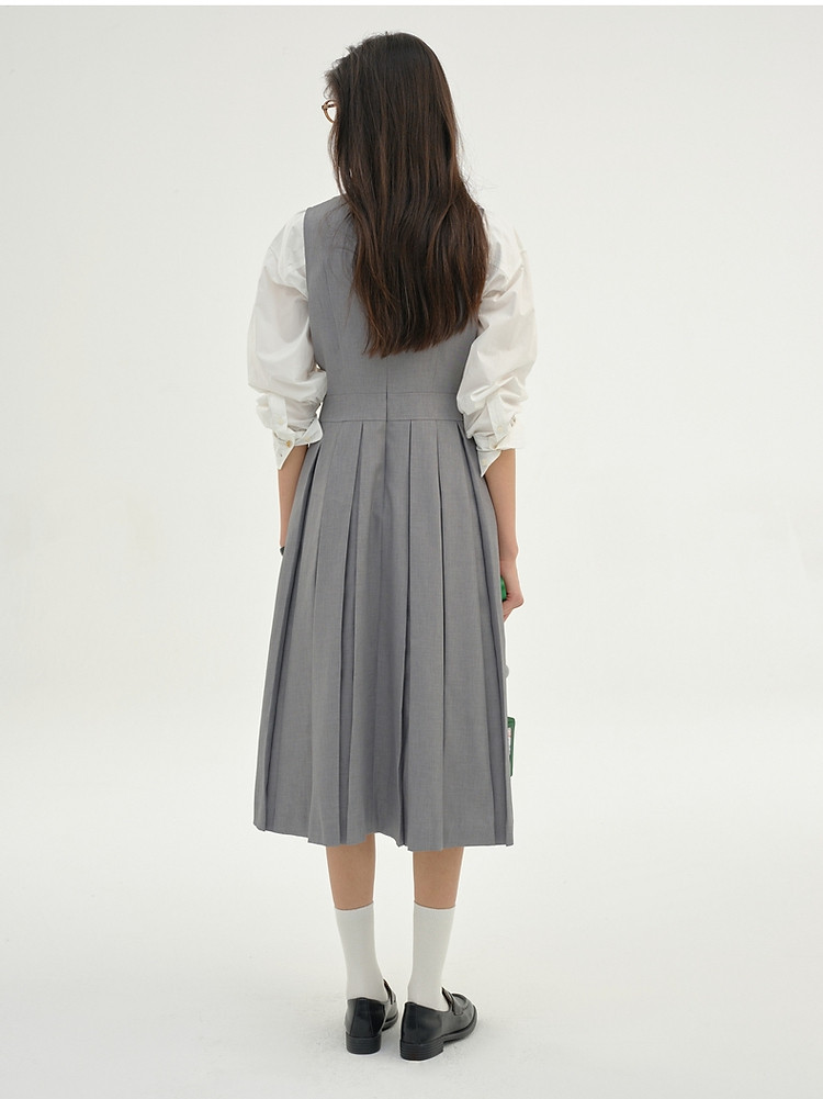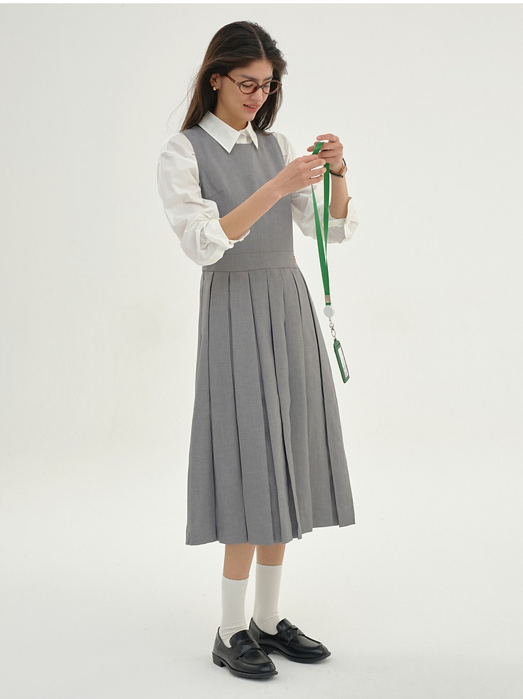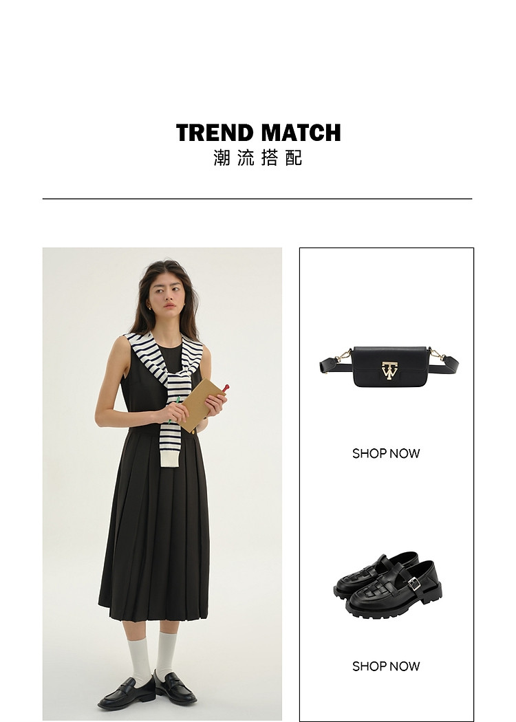 商品名称:无袖连衣裙小熊春秋款收腰百褶长裙通勤高级感连衣裙女 165569