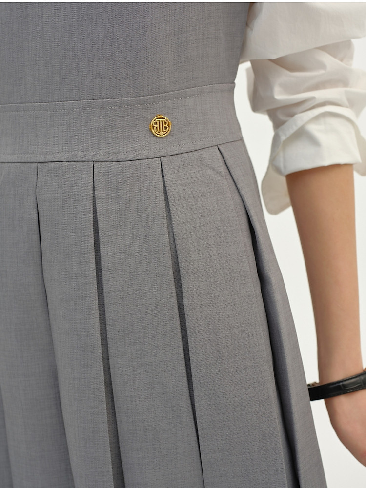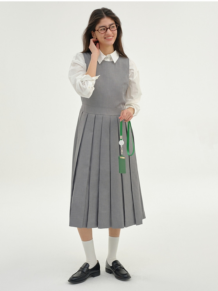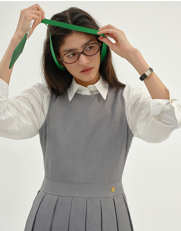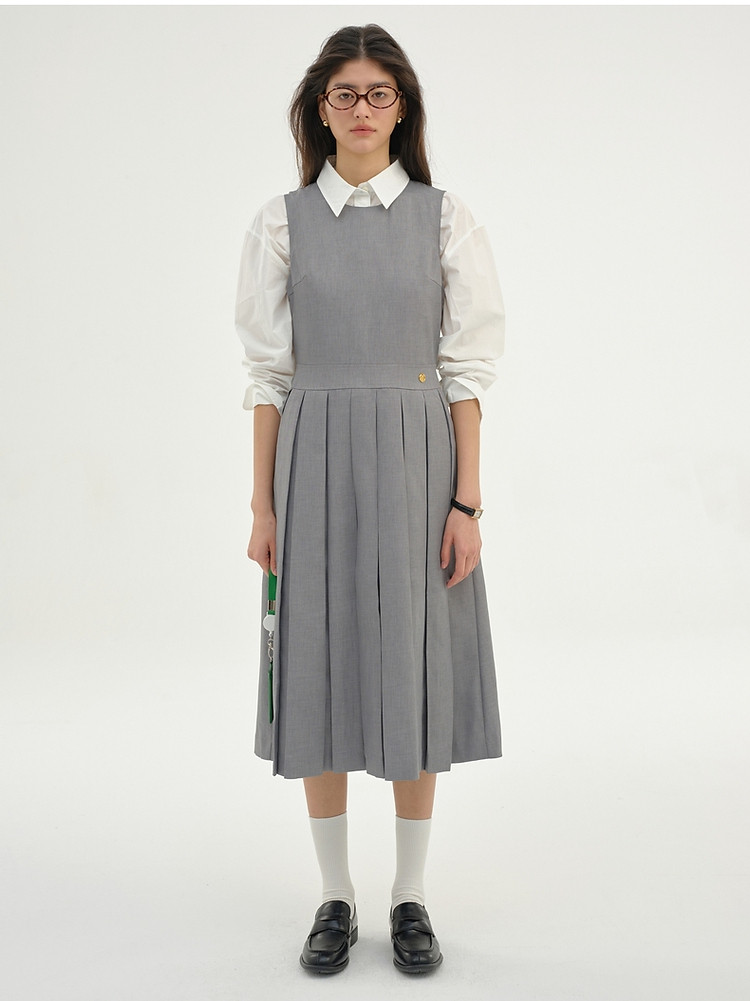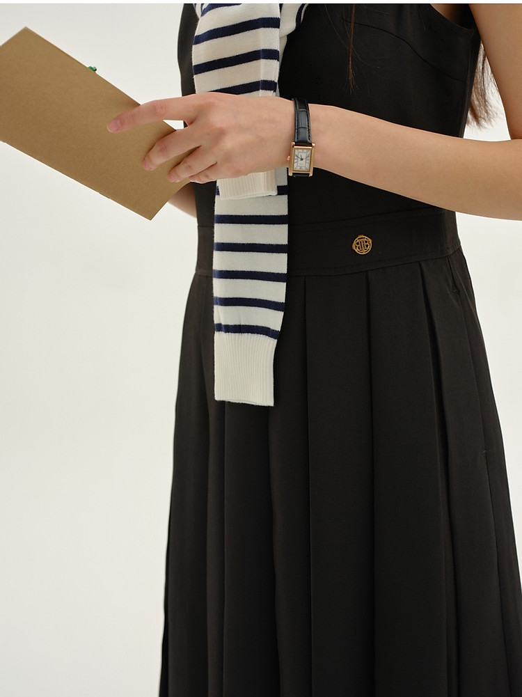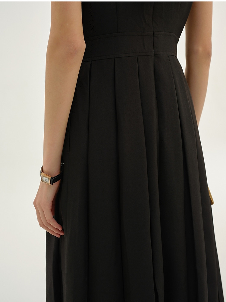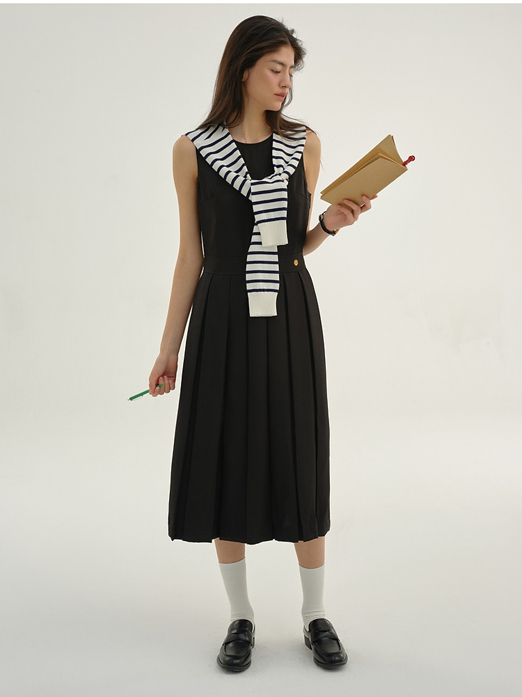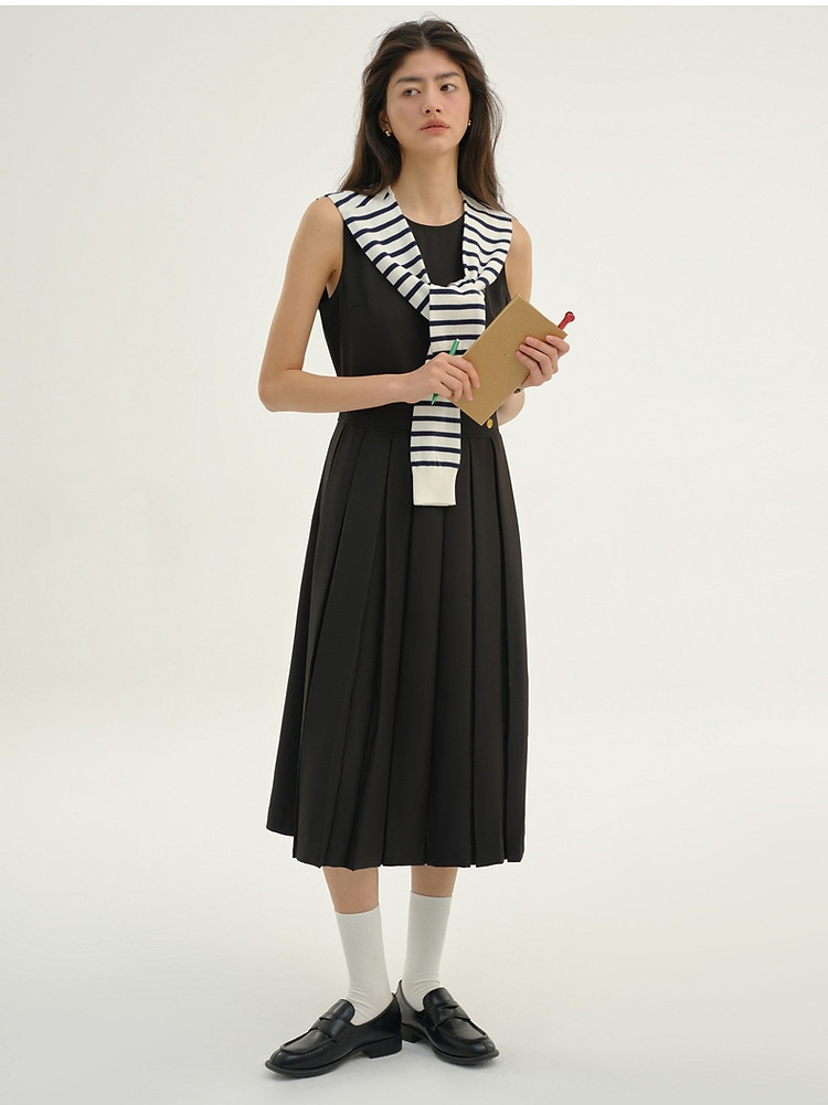 无袖连衣裙小熊春秋款收腰百褶长裙通勤高级感连衣裙女 165569