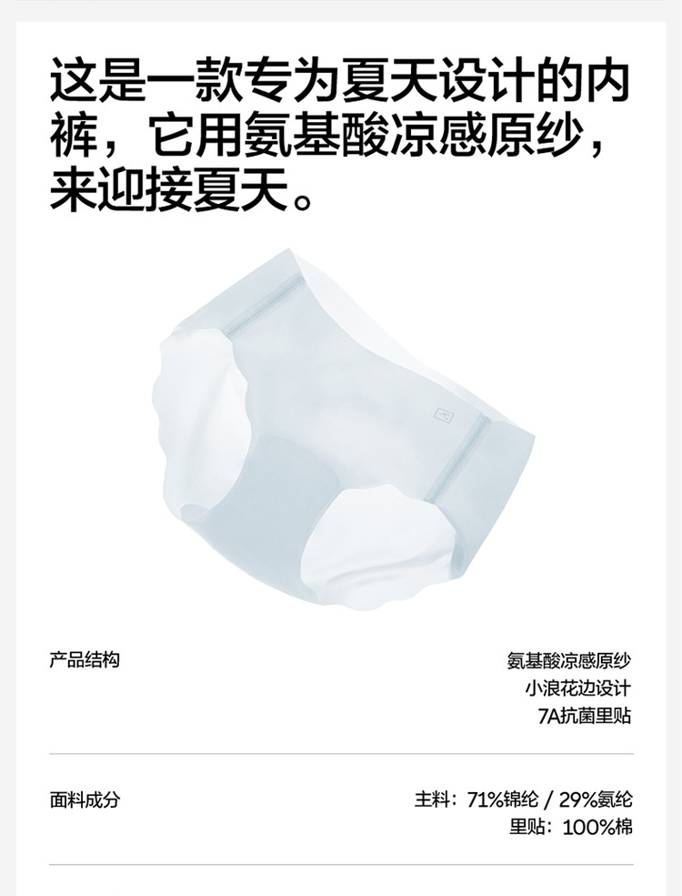 商品名称:凉皮511C女士无痕7A抗菌轻薄透气中腰棉裆舒适亲肤三角裤 204421