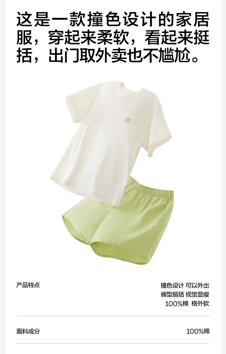 商品名称:【周冬雨同款】305H纯棉睡衣女短袖100%棉亲肤家居服春夏 293957