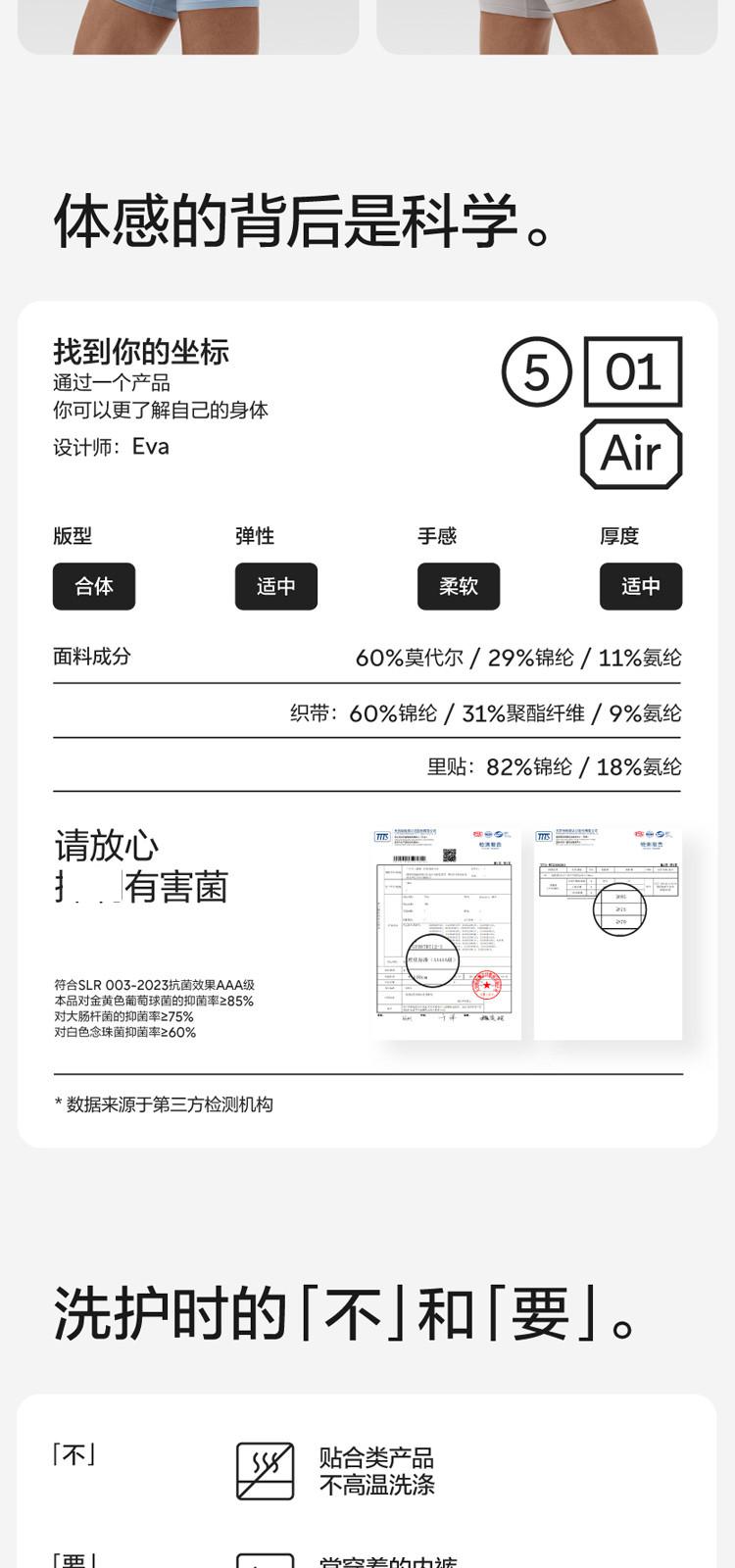 商品名称:501A莫代尔男士抗菌无痕凉感夏季3件装透气平角裤运动舒适 632133