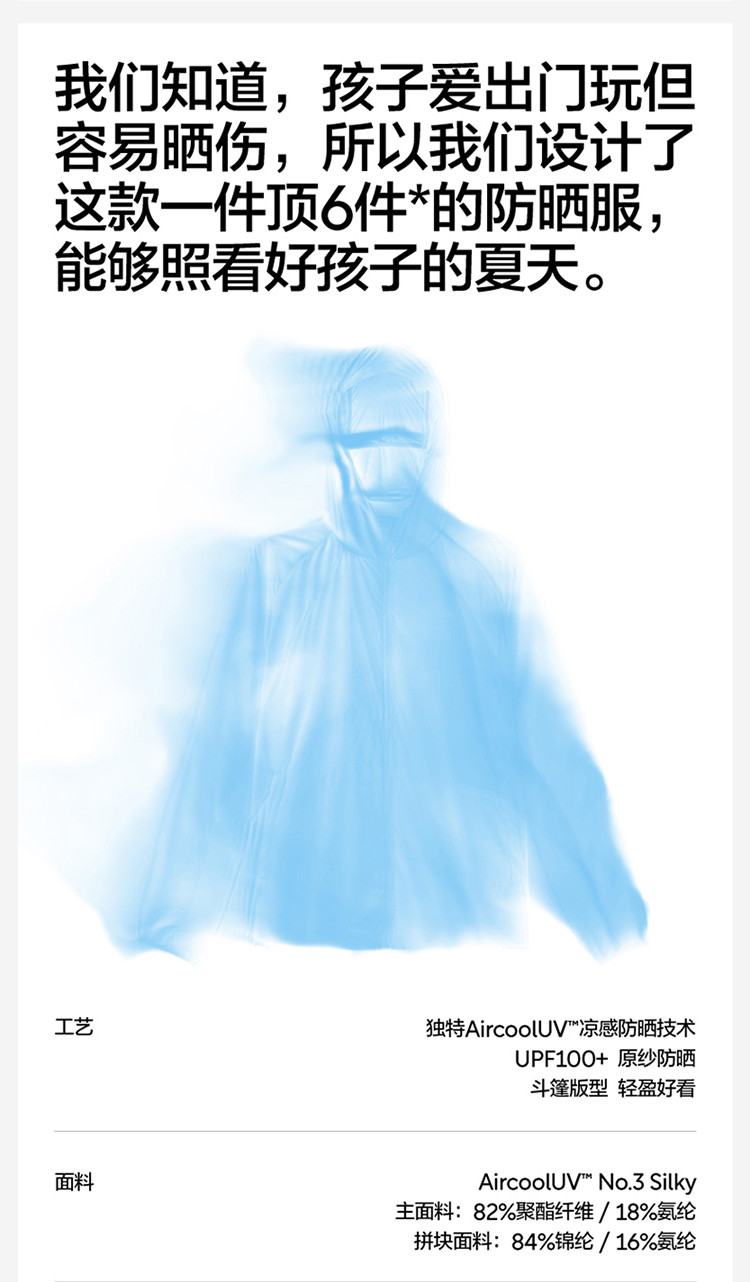 商品名称:小凉皮301UVP儿童防晒衣男女童速干斗篷防晒服外套童装夏季 376453