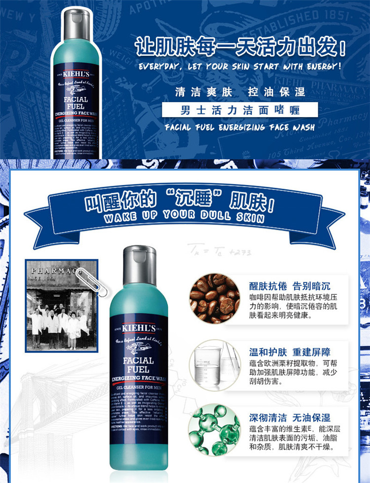 商品名称:Kiehl's/科颜氏 男士活力洁面啫喱 250ml