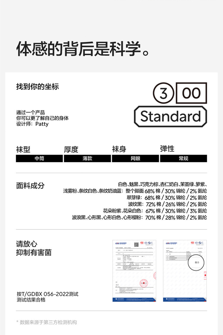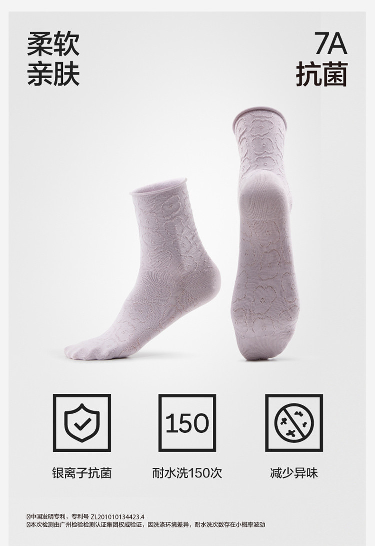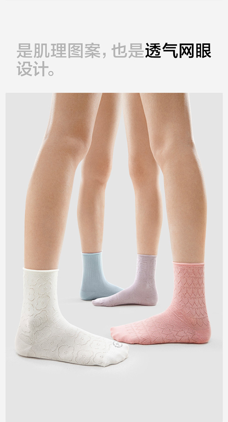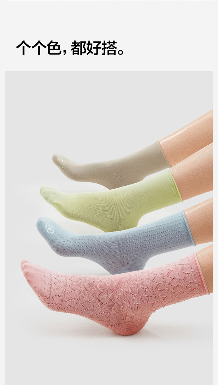 商品名称:【赵露思同款】7A抗菌300S堆堆袜网眼防臭长袜月子袜4双 009413