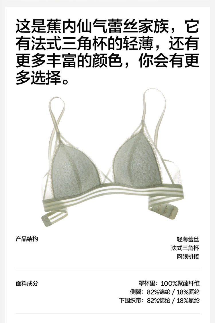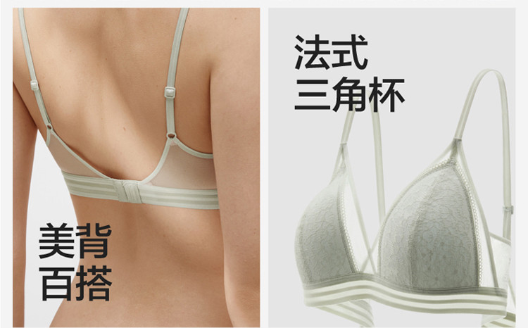 商品名称:3系美背性感蕾丝内衣薄款蕾丝文胸法式三角杯无钢圈女士胸罩 292165
