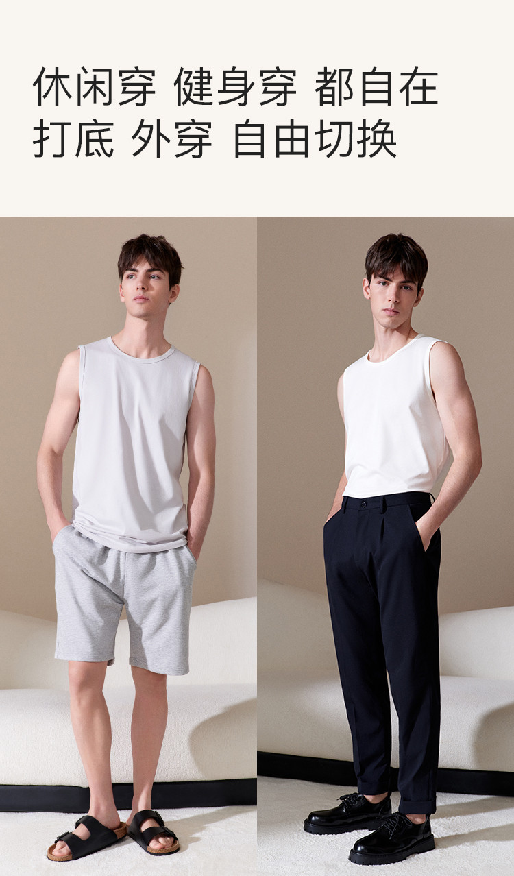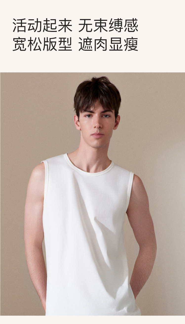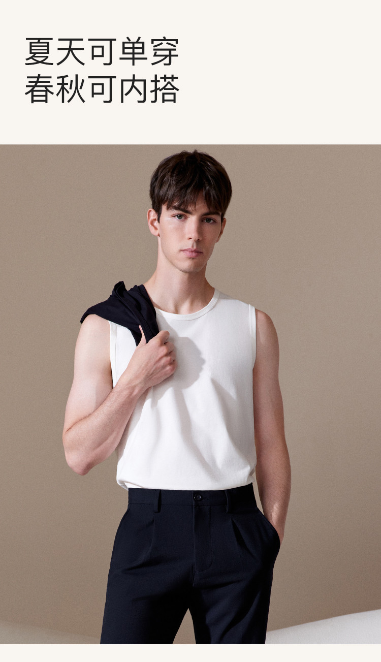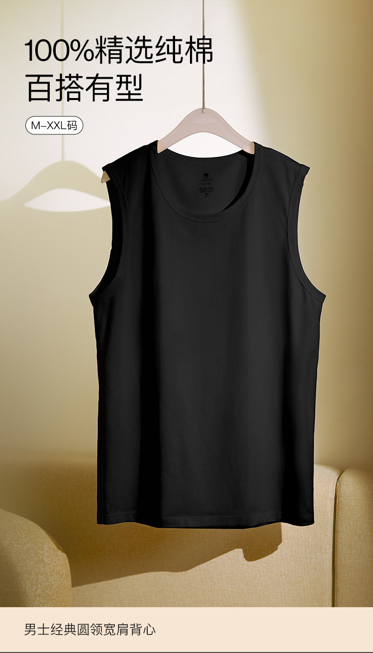 商品名称:【100%纯棉】男士圆领宽肩背心透气亲肤可外穿打底内衣宽肩带 570880
