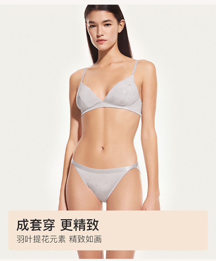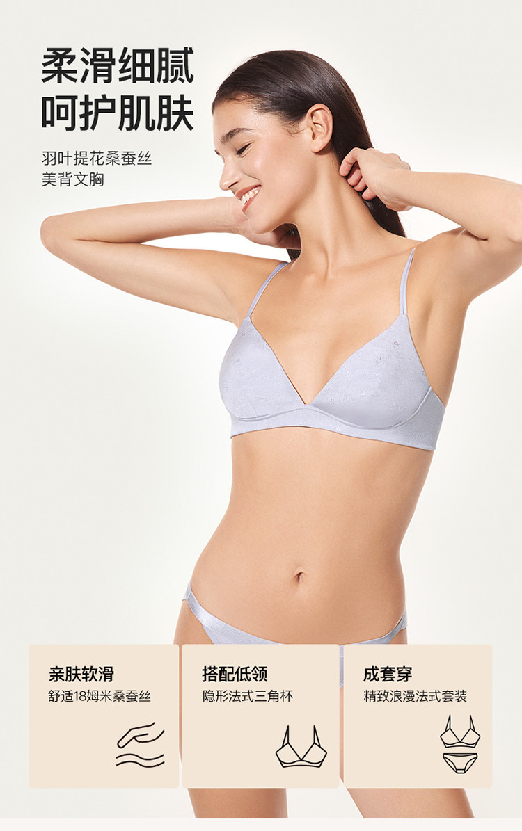 商品名称:【美背细肩带】羽叶提花桑蚕丝文胸三角杯亲肤舒适无钢圈内衣女士 234432