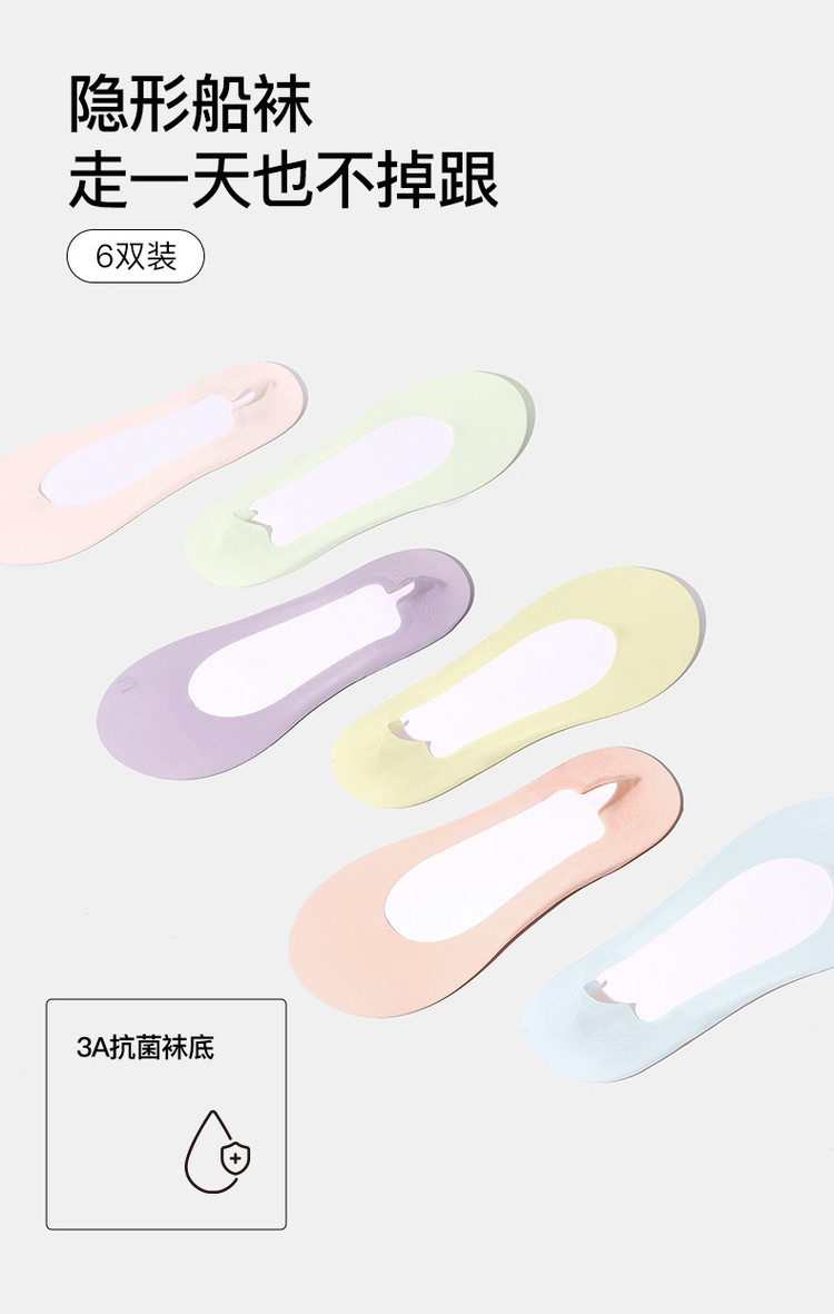 商品名称:【防滑不掉跟】6双装浅口超浅口船袜隐形无痕轻薄透气吸汗女袜 897088